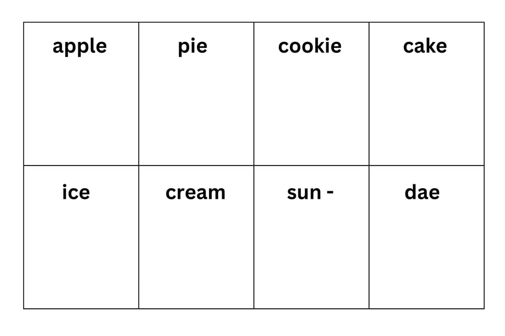 I would handle this by thanking them for the suggestion, but also offering that we might shorten it a bit to just say "ice cream sundae." You will decide ahead of time how many beats you want to fill in your Word Chain. For younger elementary - 8 beats is enough, but older elementary could extend to 16 beats.