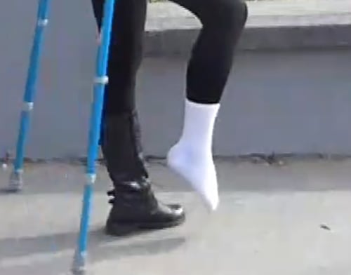 Welcome, this is a place for people loving girls with socks or pantyhose with some foot problems using crutches, special shoes or just hopping and limping around.