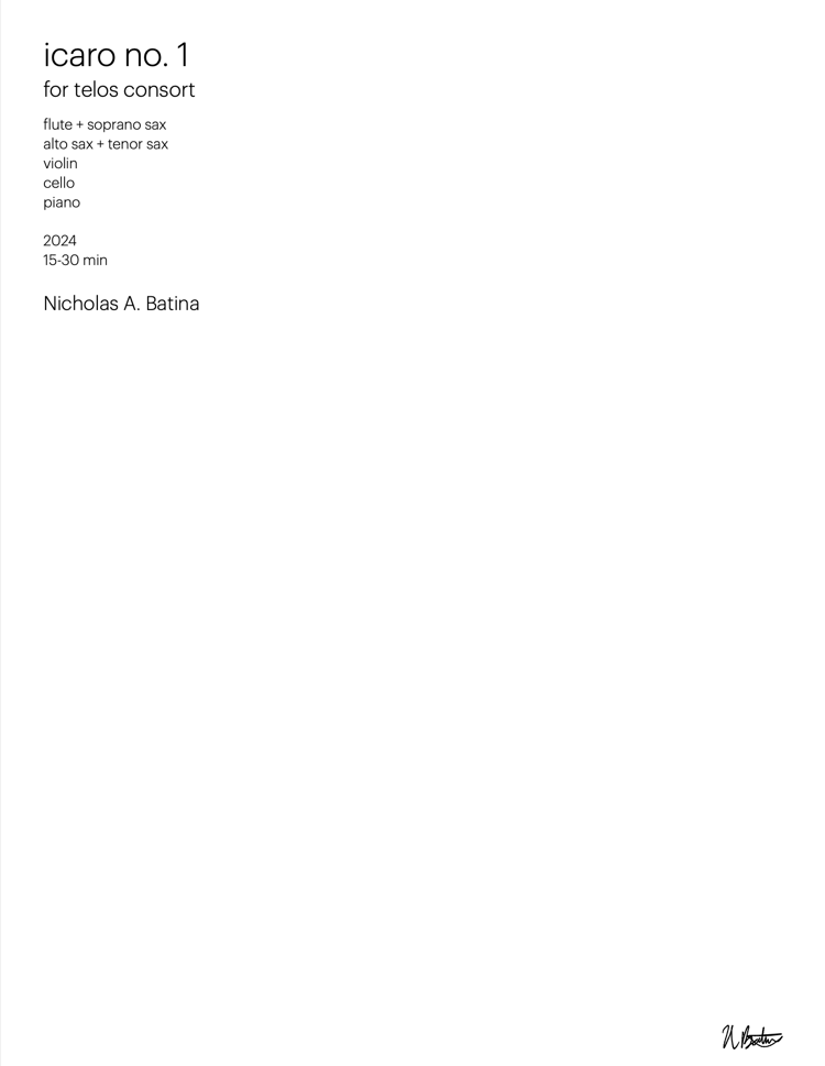 Hi, I'm Nick. I'm a composer and violinist based in NYC, and I want to share my scores with you! They will all be linked to my site, nbcomp, but this is my entire storefront. Make sure you are purchasing the right version of the score: Full Score Only, Score & Parts, or Parts Only. For works featuring electronic elements included (as some of my works require you to record your own), QR codes will be left in the score/parts themselves. All necessary media will be found there, linking to a google drive.