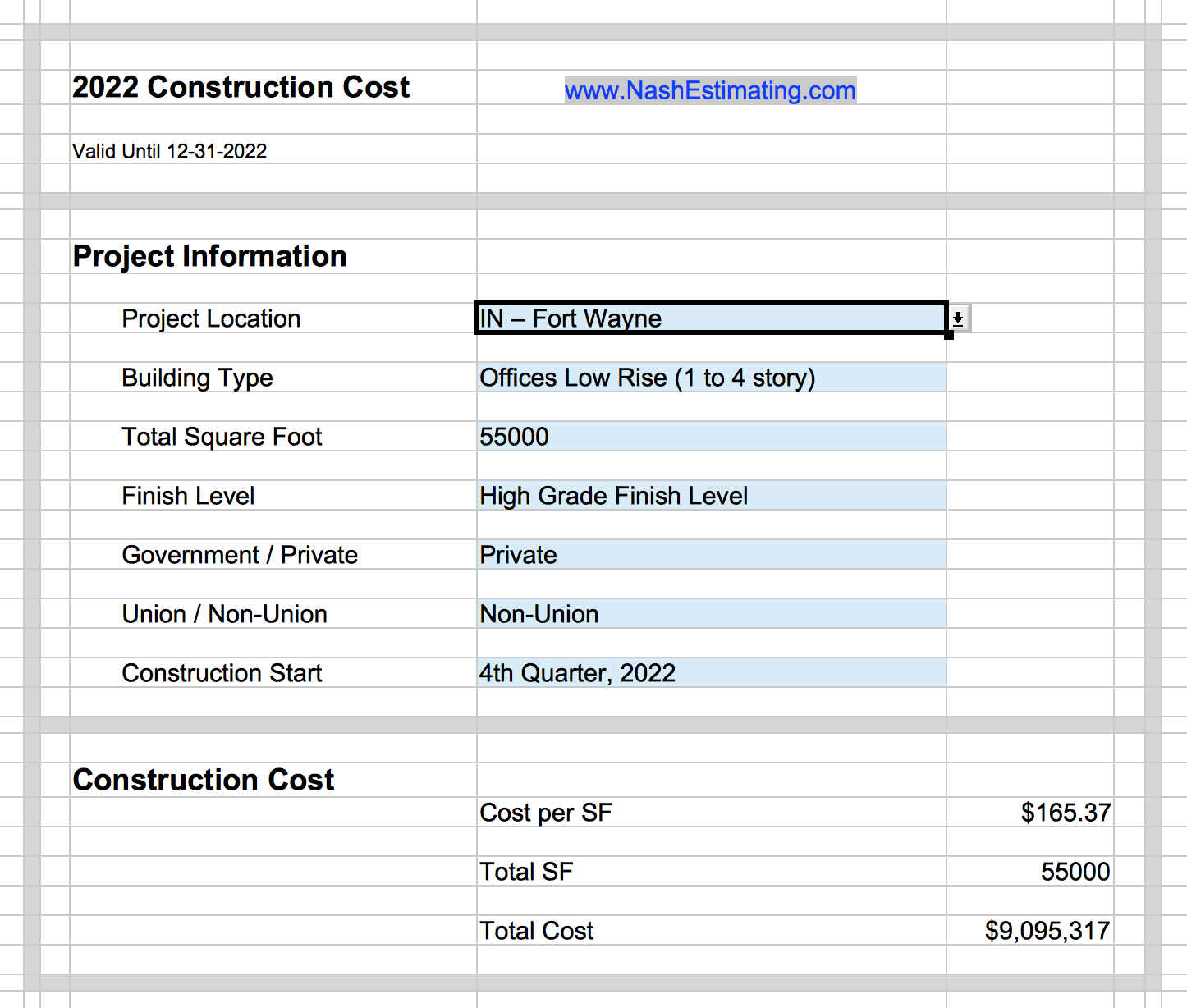 2022 Budget Construction Costs