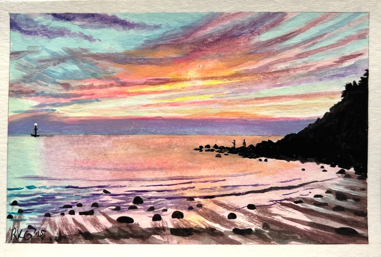 My style sits between impressionism and realism. Up close, my brushstrokes break into small, dash-like marks; from a distance, they come together into something just clear enough to feel like a memory. I work primarily in professional-grade gouache and watercolor, using rich color to capture fleeting, dreamlike moments.