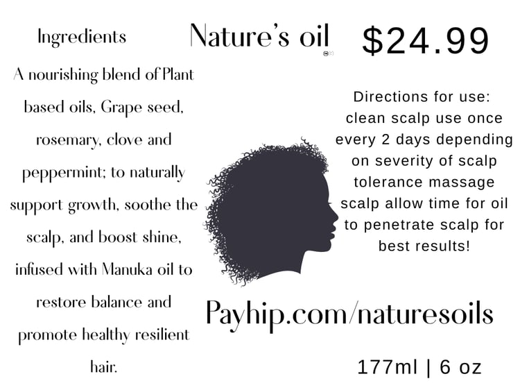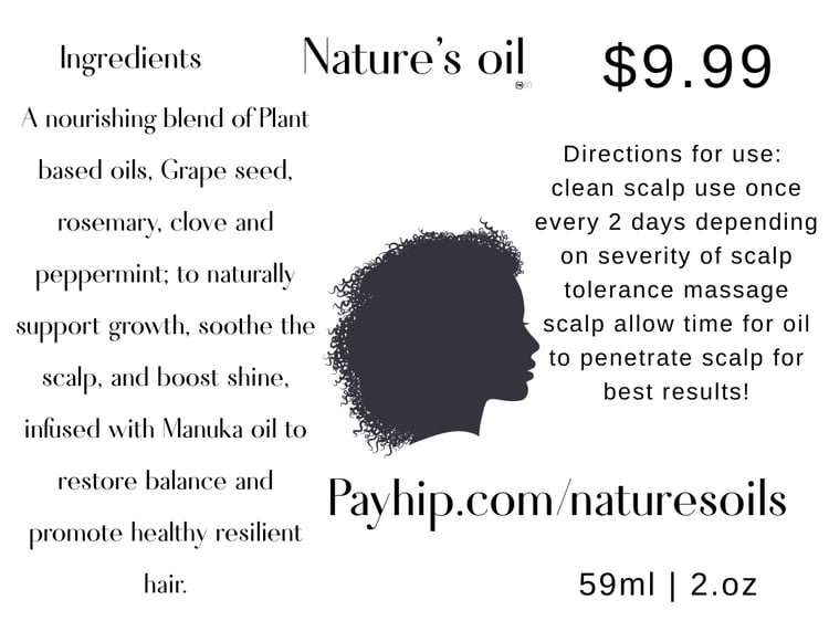 Hello and thank you for your support, I am a mom of 4 with a passion for natures natural ability to heal and nourish the hair and body. I created this hair oil with my son in mind, due to his loc's always having a mildewy scent it made him smell unclean and I knew he was bathing daily, even washed his hair almost daily to get rid of the funk, not only did my hair oil completely remove the smell, a detox wash could not remove, doctors couldn't prescribe anything to remove it or stop it the only option we had was to cut his hair off and that was not an option. so I did what mothers do best and I was blessed with these ingredients from a prayer and I went to work on the oil, not only does it remove foul odors but it healed his scalp of all irritations, it helped grow back alopecia spots in some scalps, and also helped his hair grow really fast. it has many healing and anti-fungal and antibacterial properties anti inflammation, and the best part it has no nut based oils at all for those who are sensitive to nut based oils, allergen safe.