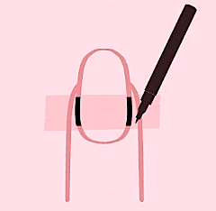 Once the tape is securely on your nail, use a pen to mark both sides of your nail. Ensure that you mark carefully, as failing to do so may result in an unsatisfactory or inaccurate fit.