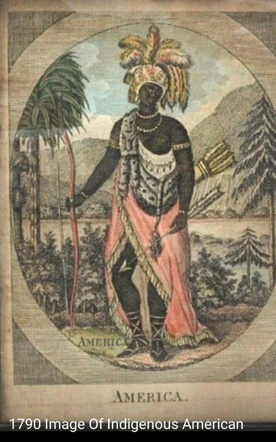 This early representation reflects how America was once understood — Indigenous, sovereign, adorned, and alive. It is not a portrait of a single tribe or individual, but an affirmation of Indigenous presence and continuity before imposed reclassification.