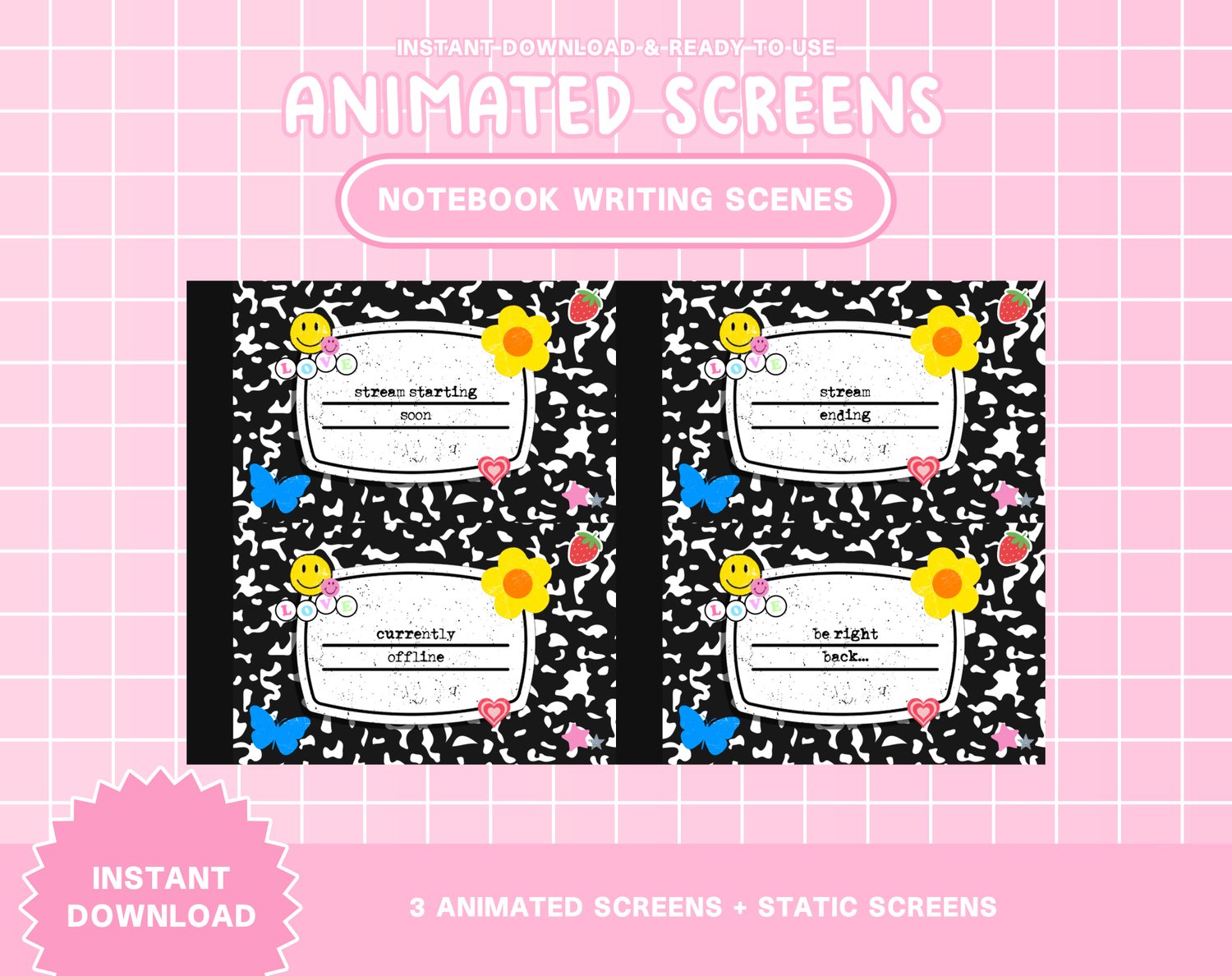 4 Notebook Style Animated and Static Twitch Scenes
