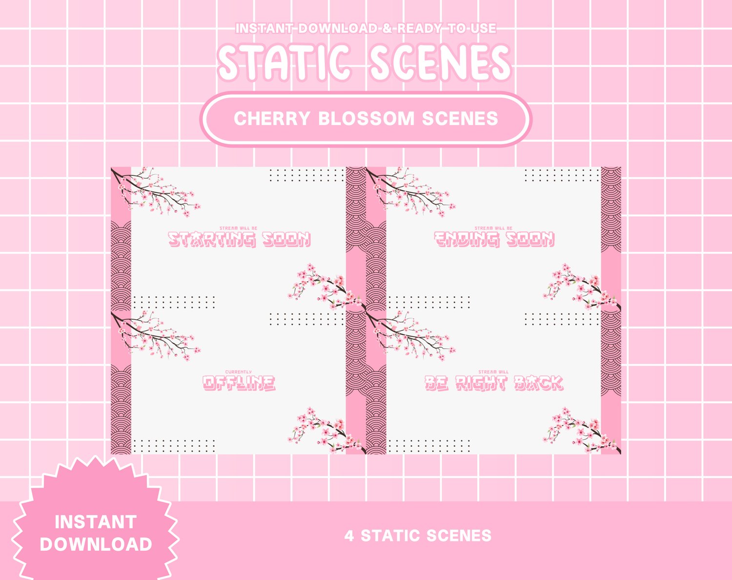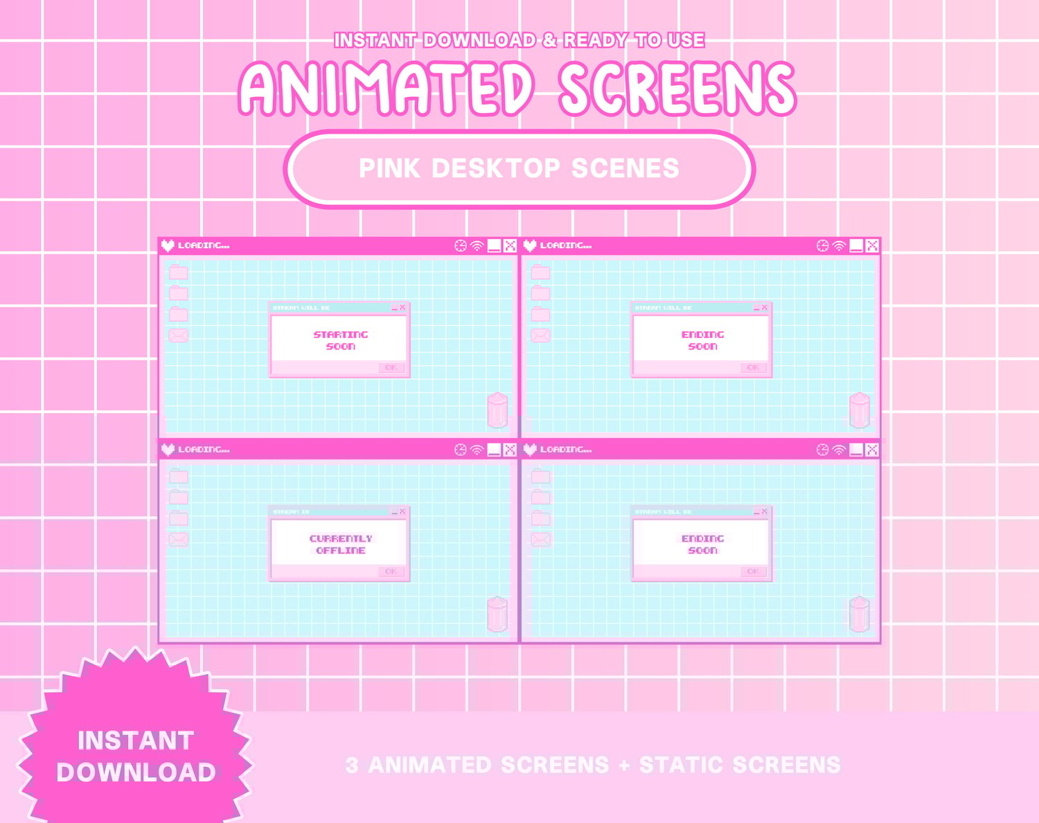 4 Pink Desktop Scenes Animated and Static Stream Scenes