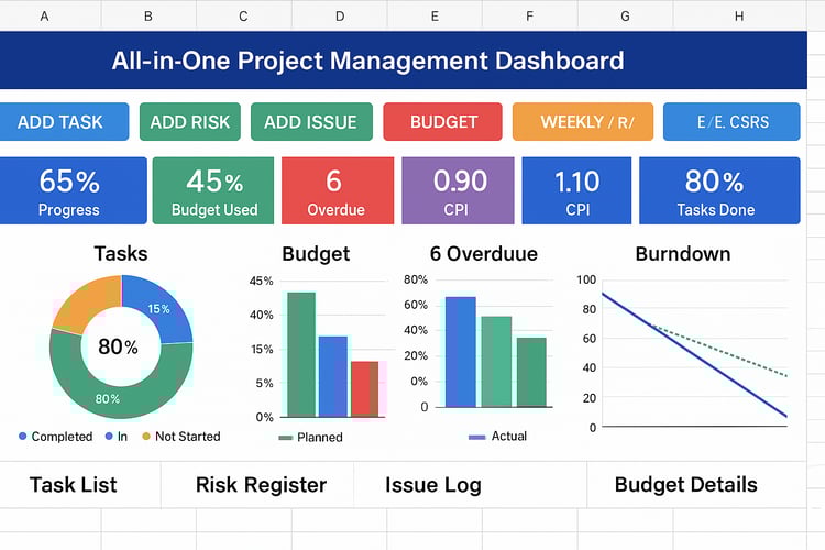 Each template I design is built from real project management experience — combining structure, automation, and clarity. My goal is to help project managers, PMOs, and business leaders visualize performance, identify risks early, and present data confidently without expensive software.