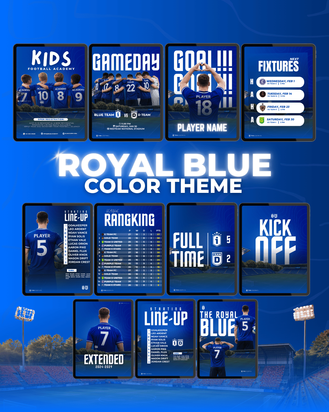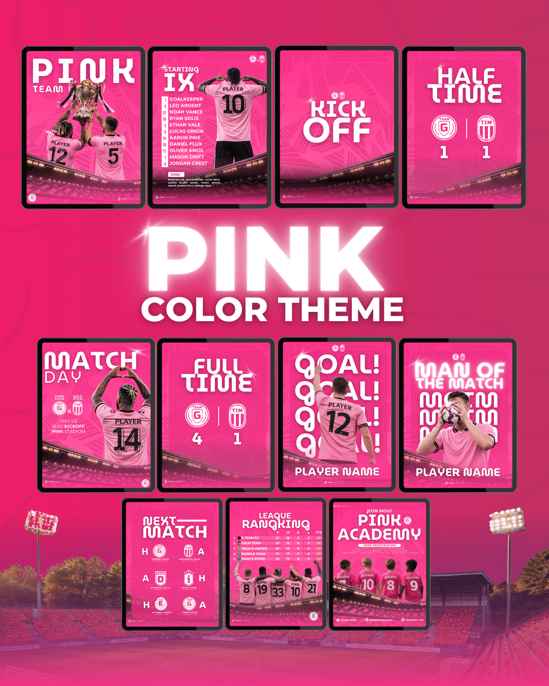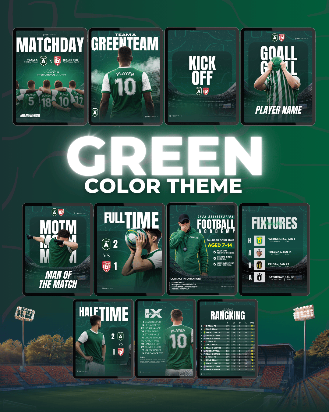 Whether you're promoting your starting XI, full-time, or showcasing your academy, these templates are built to save you time and make your brand stand out.