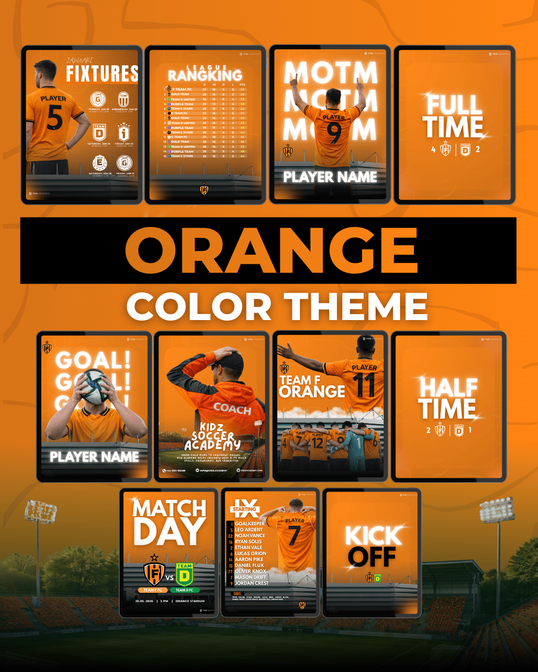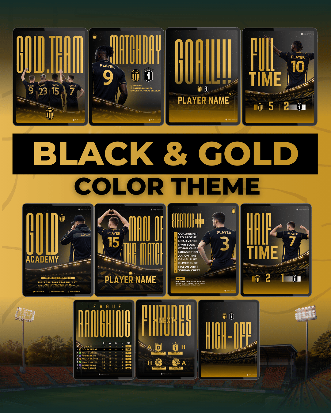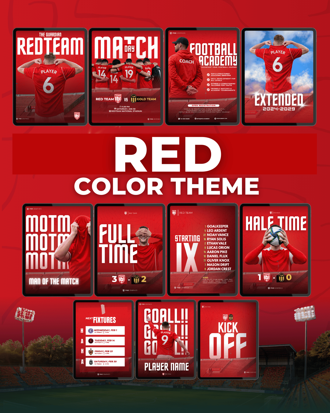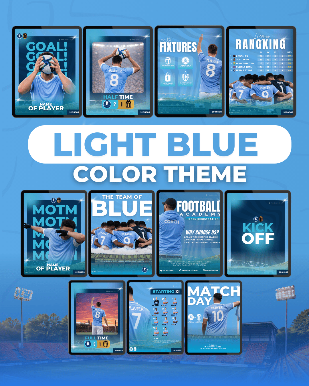 Whether you're promoting your starting XI, full-time, or showcasing your academy, these templates are built to save you time and make your brand stand out.
