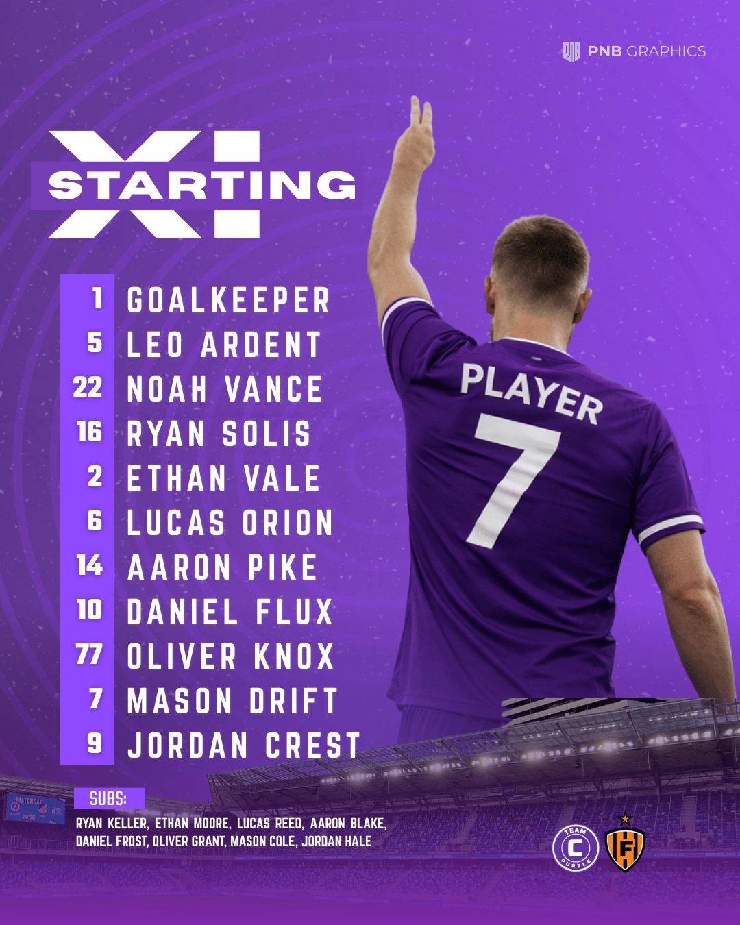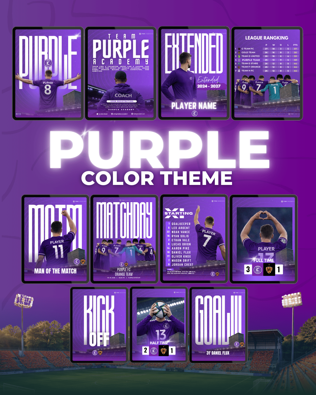 From starting XI graphics to matchday posters and player highlights, every layout is designed to be simple, stylish, and mobile-friendly.