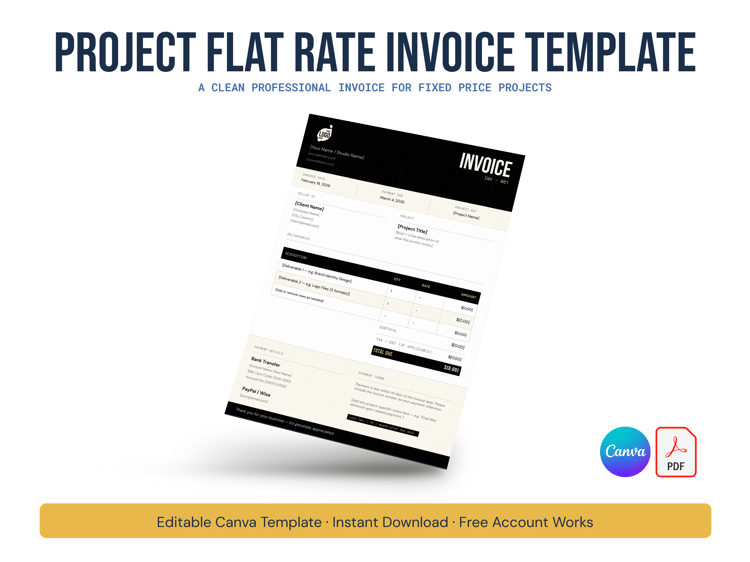 ✦ Project Flat Rate Invoice Template: perfect for fixed price projects and one-off jobs