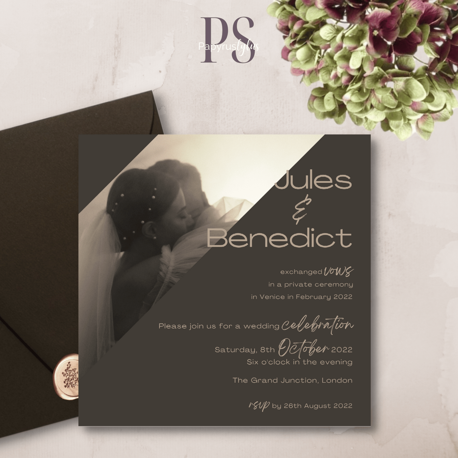 JULES Stylish Wedding Invitation Template | PHOTO STRIPE | BLACK OLIVE