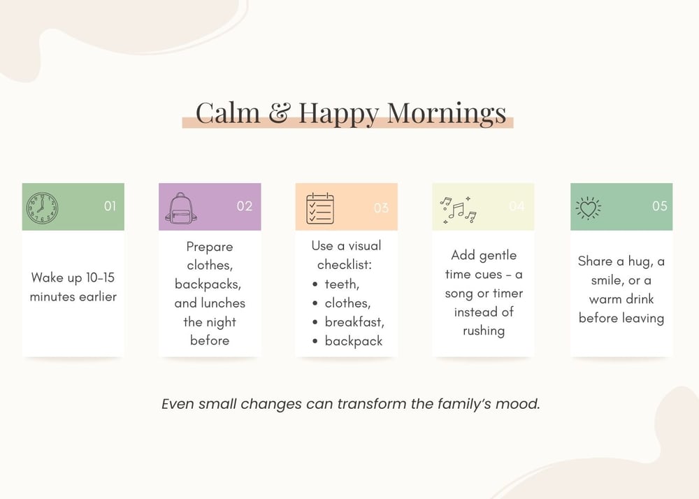 Mornings shape the whole day. When they start with calm, children feel secure and parents feel less rushed.