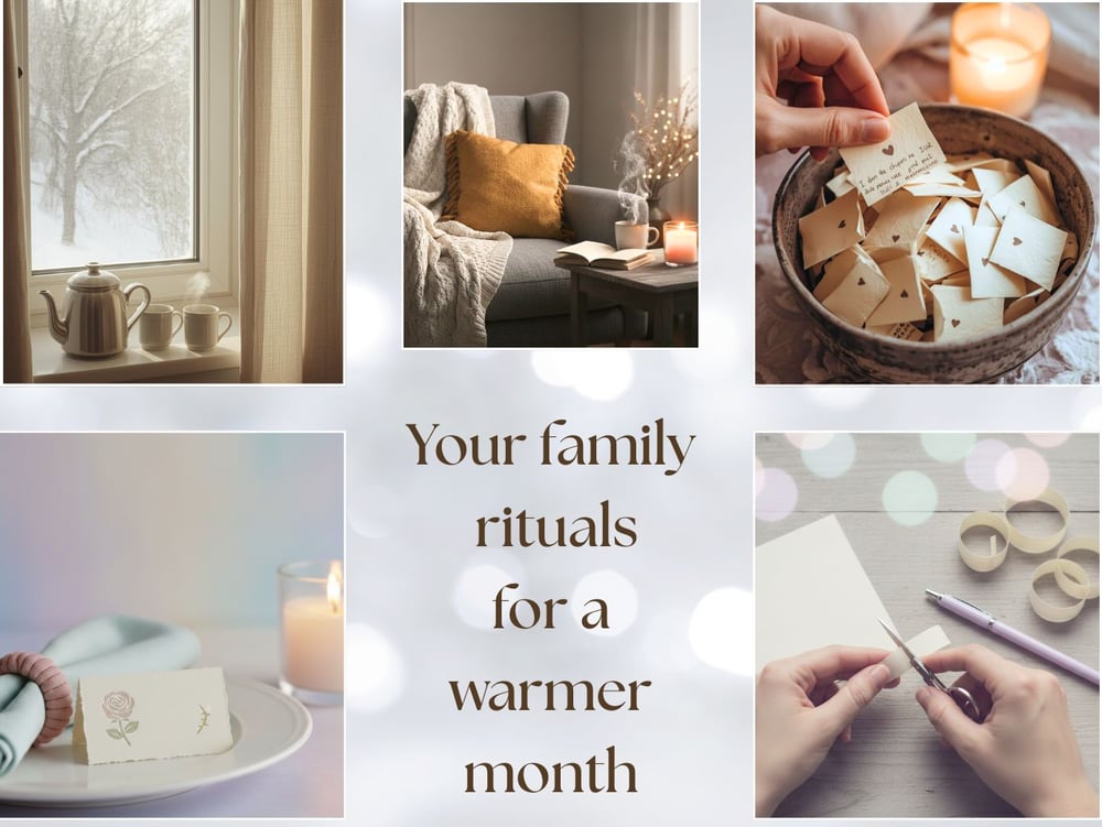 one candle, one book, one warm drink; phones rest in another room for twenty minutes. End by asking: “What felt good today?”