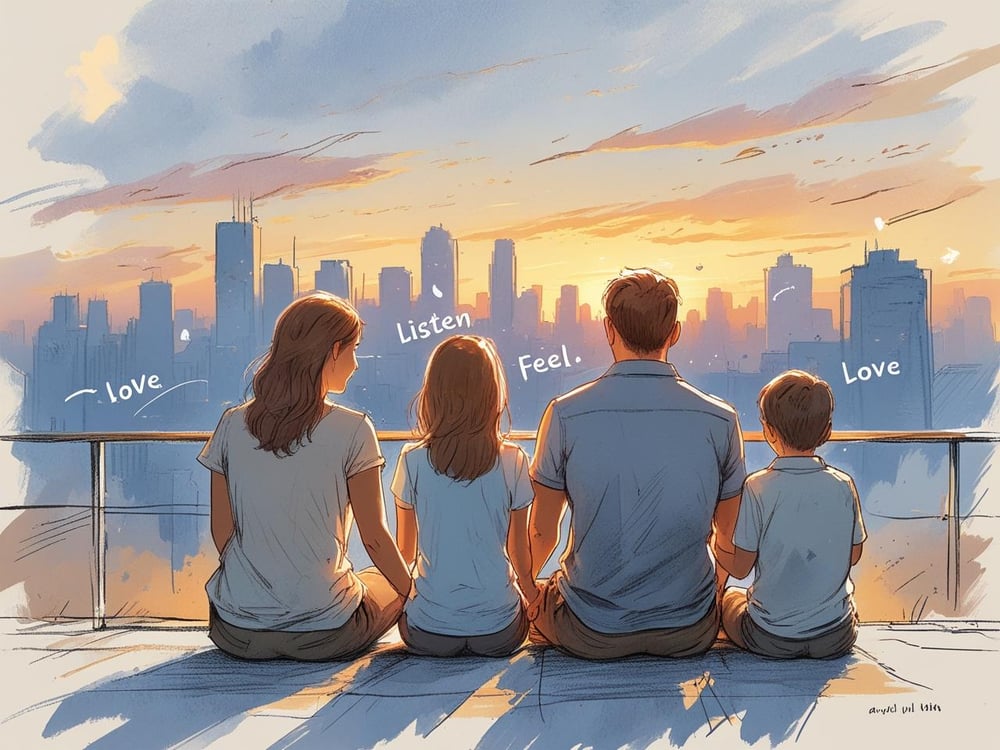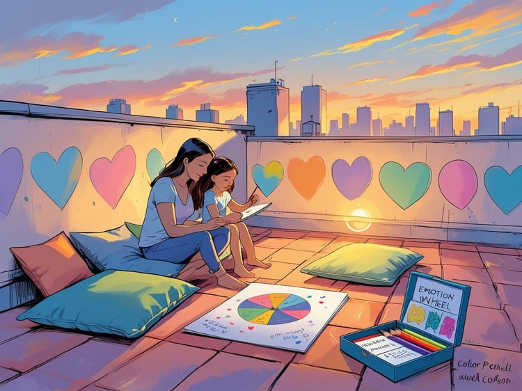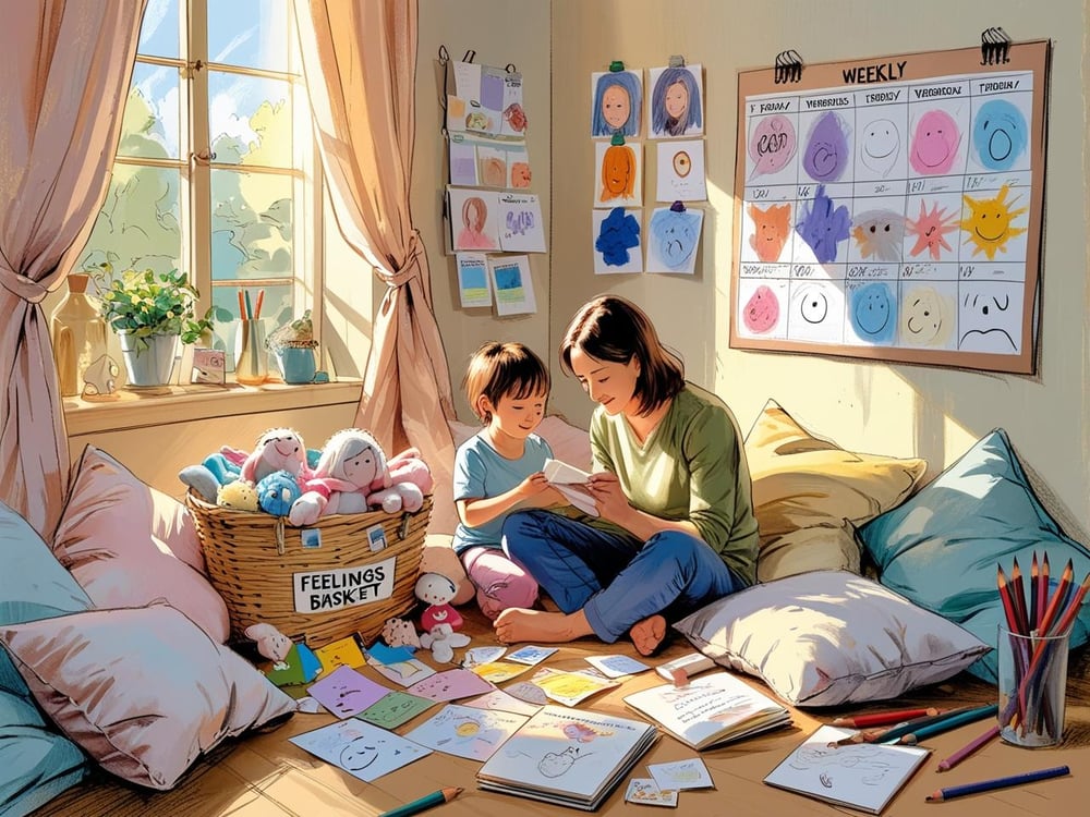 One gentle ritual is an evening βemotion check-in,β where each family member shares one word or colour to describe their day.