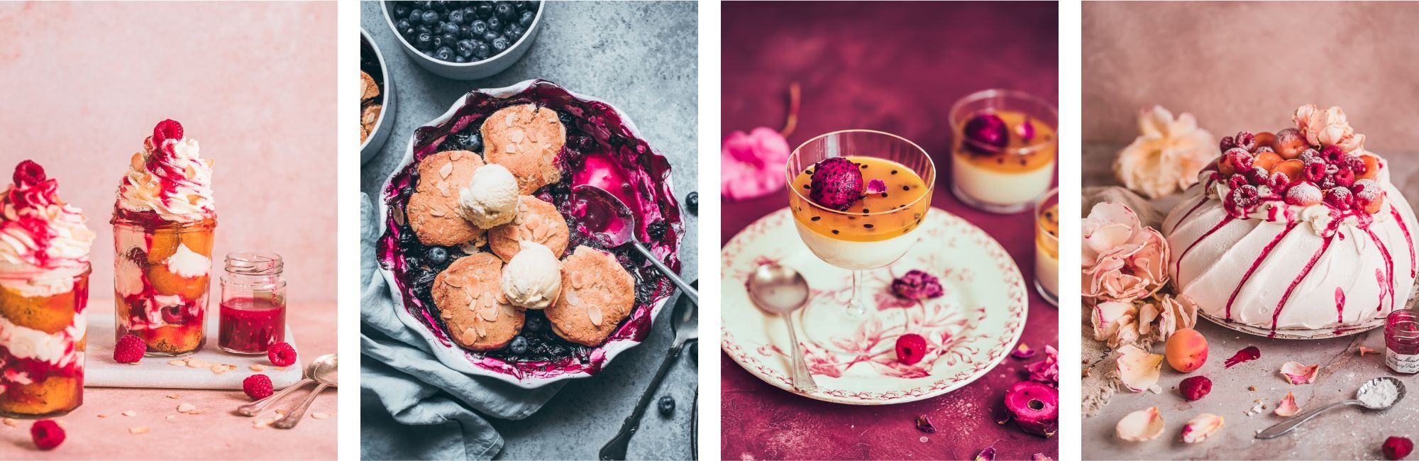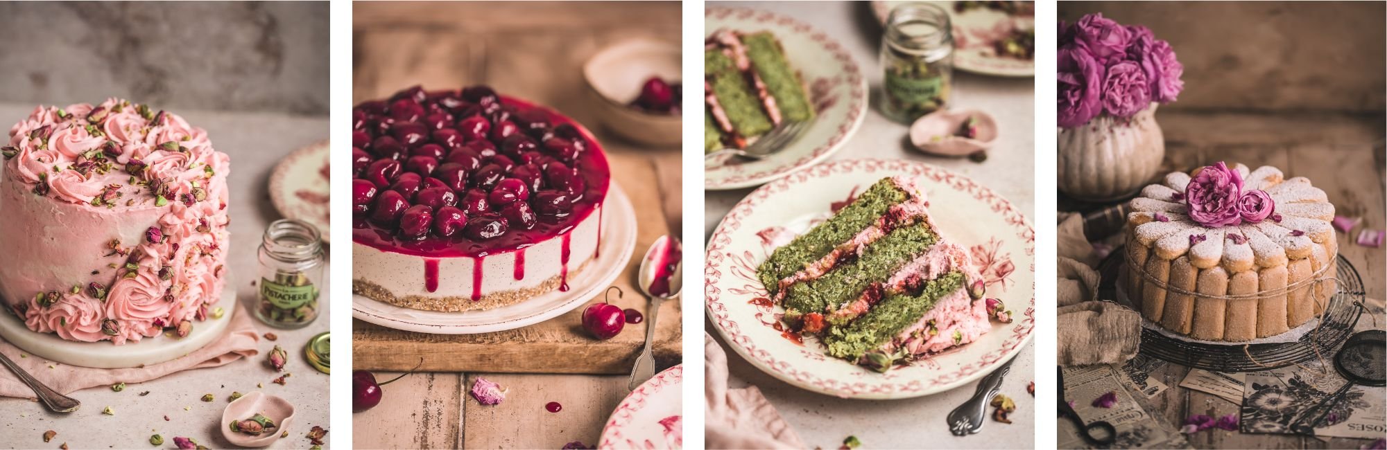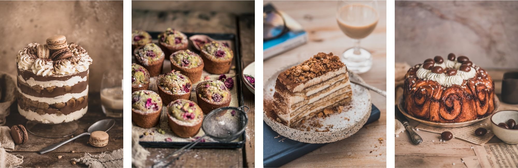 • Fotografias da montagem da Charlotte de Páscoa, do Bolo de Bolacha e do Folar de Páscoa;