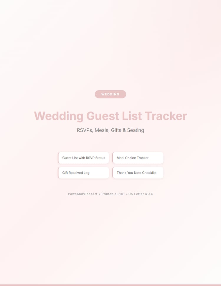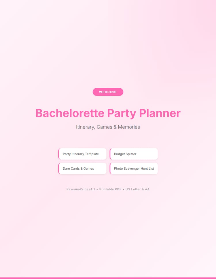 Welcome to PawsAndVibesArt! We create beautiful, minimalist digital templates and printables to help you organize your life. From ADHD-friendly planners to wellness journals, budget trackers to wedding planners — all designed with care and available as instant digital downloads. Print at home and start transforming your daily routines today!