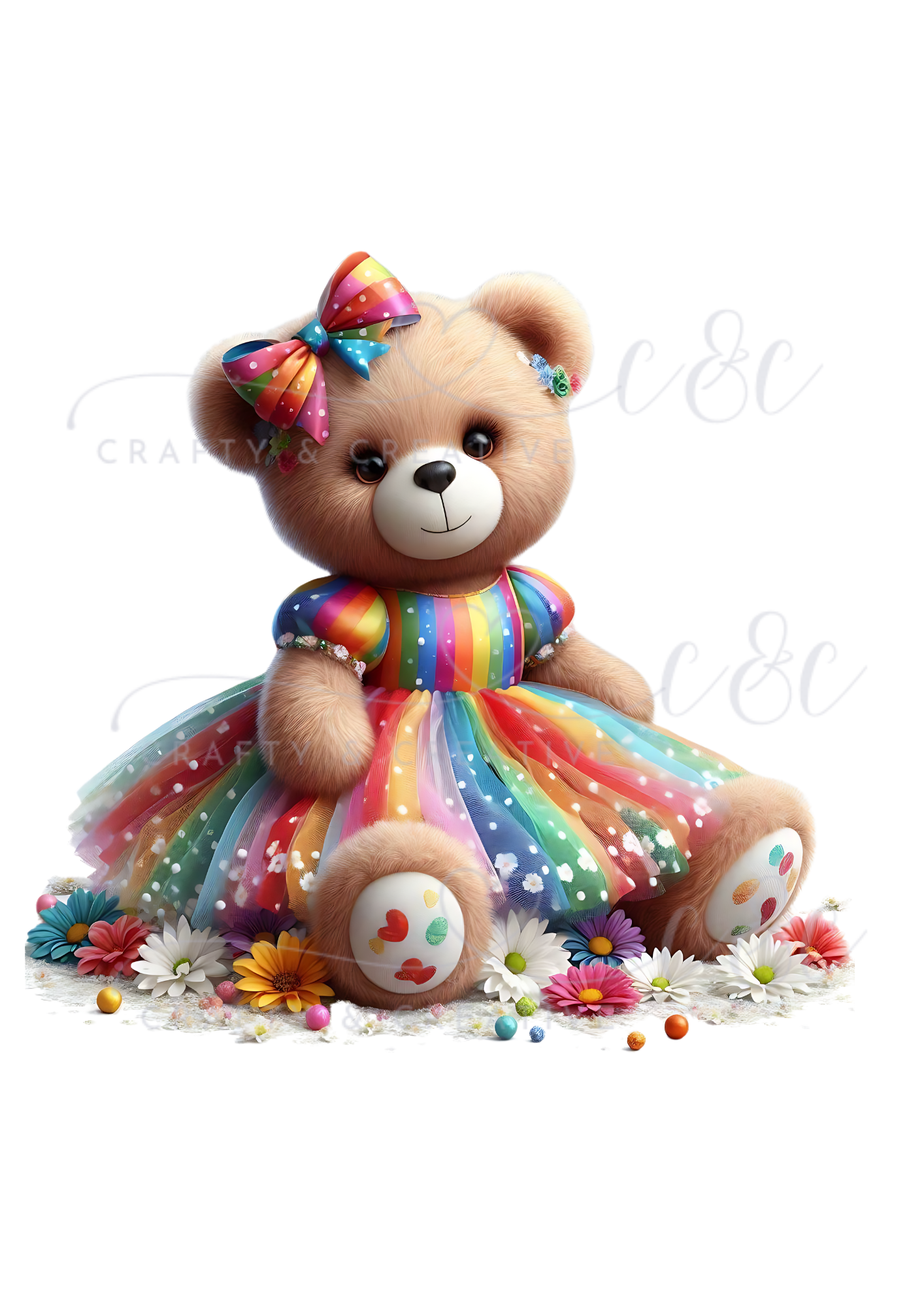 Super Cute Rainbow Teddy Bear Wearing a Dress