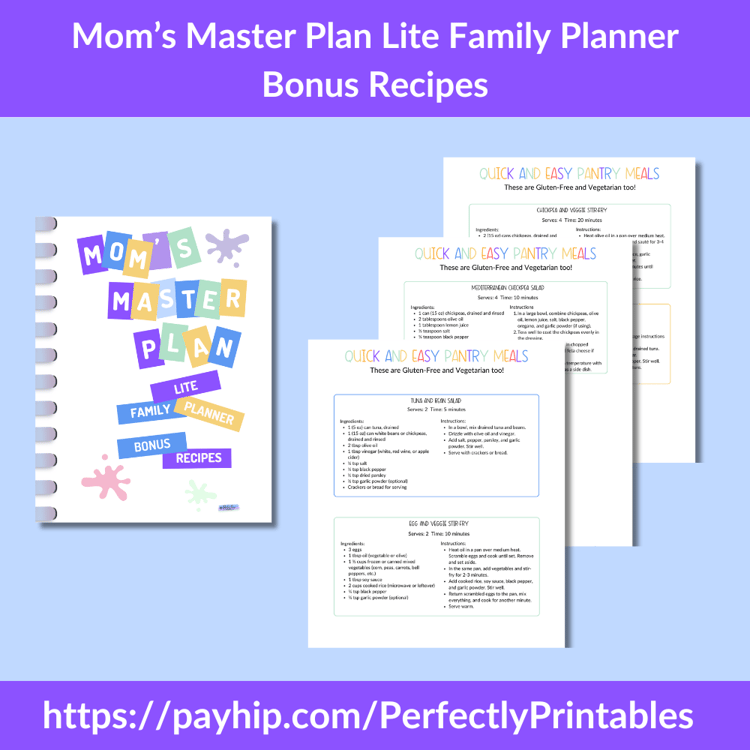 Get 5 quick & budget-friendly recipes FREE when you order the Mom's Master Plan Lite Family Planner!