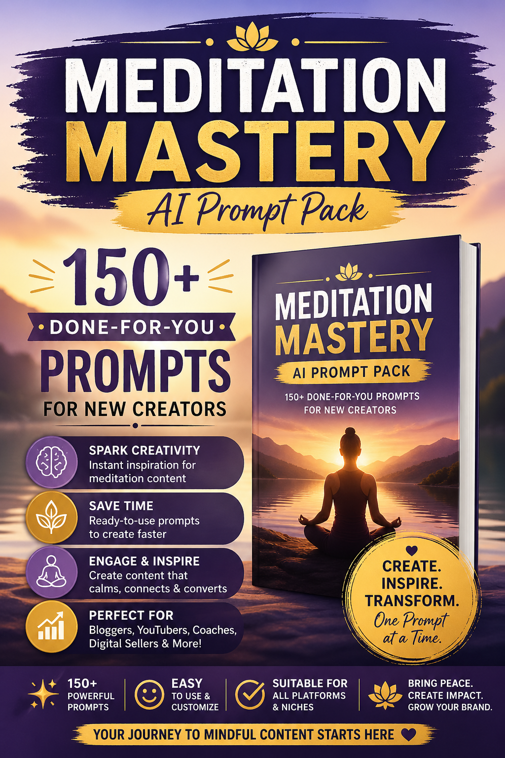 Meditation Mastery AI Prompt Pack – 150+ Done-For-You Prompts for New Creators