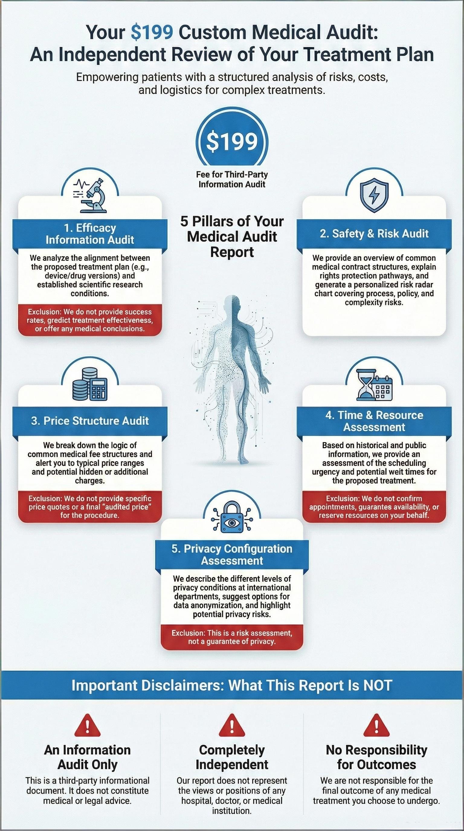 Limitations: No medical or legal advice provided; no liability for medical outcomes.