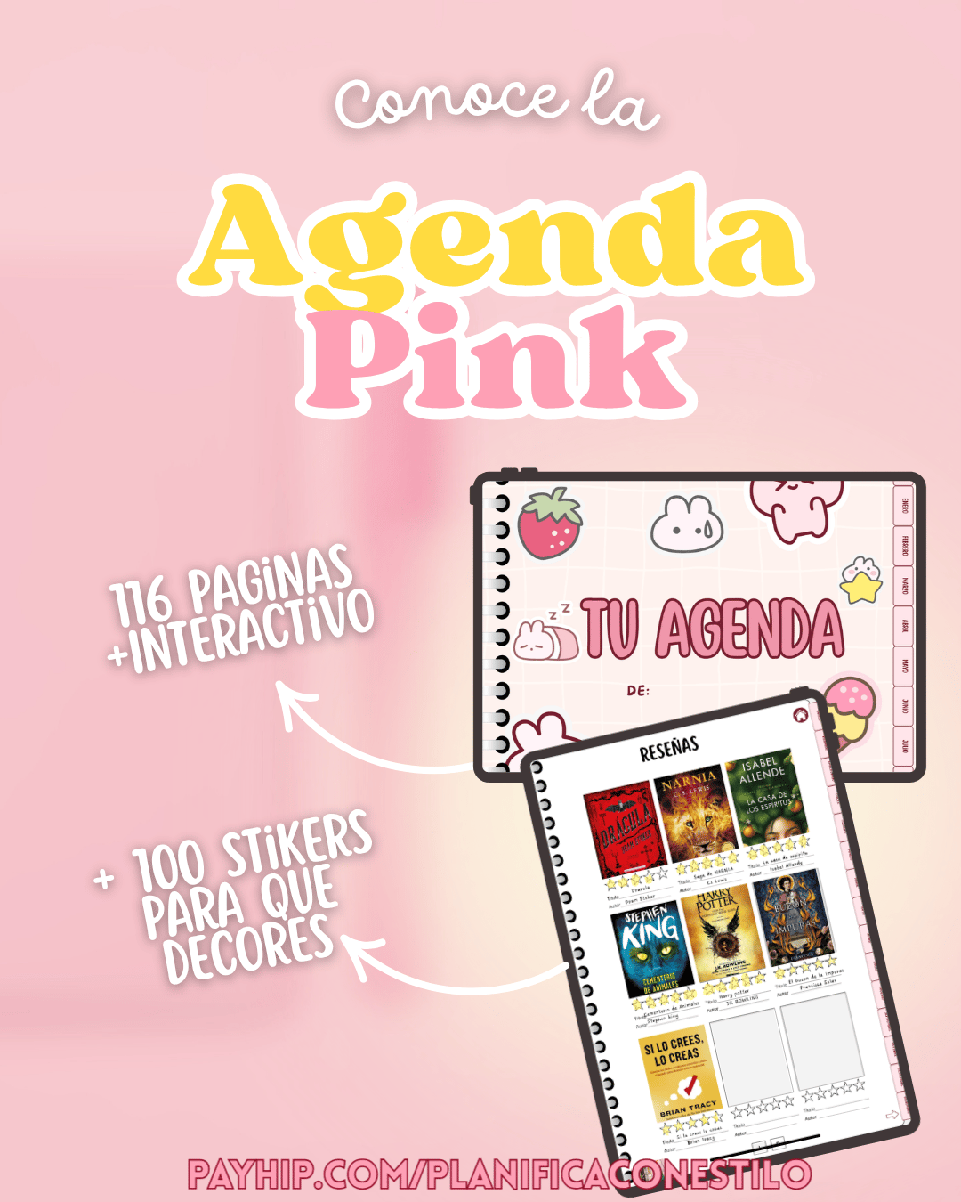 - Incluye 116 páginas interactivas con secciones de hábitos, finanzas, planner semanal, metas, calendario 2026, reseña de libros y más.