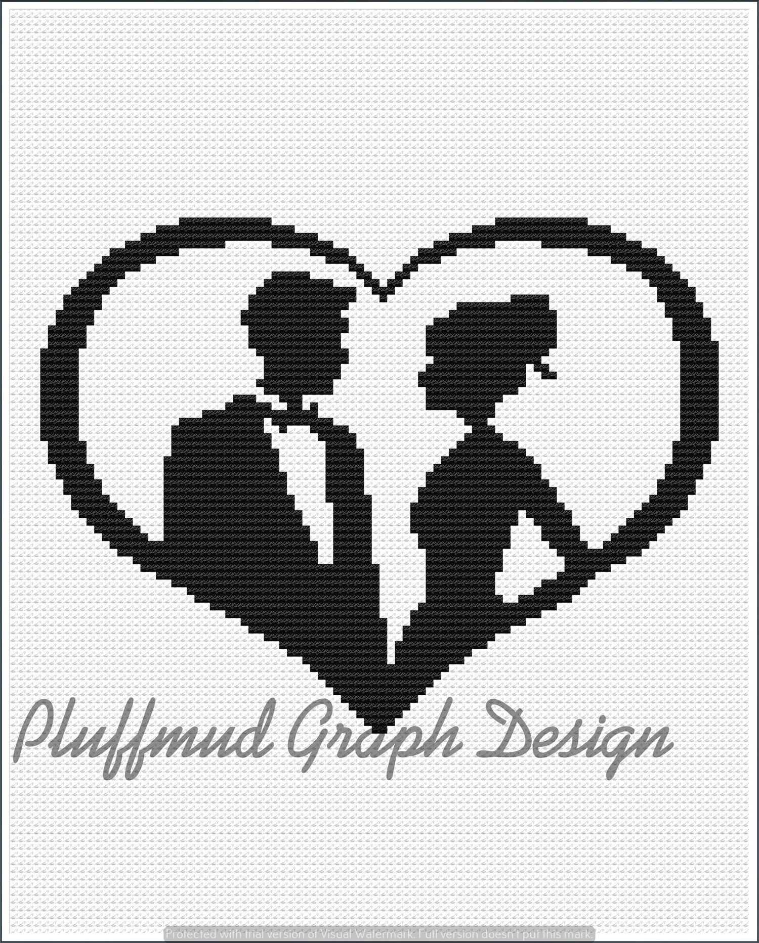 Couple in Heart Silhoutte MINI c2c 96X120 adult throw
