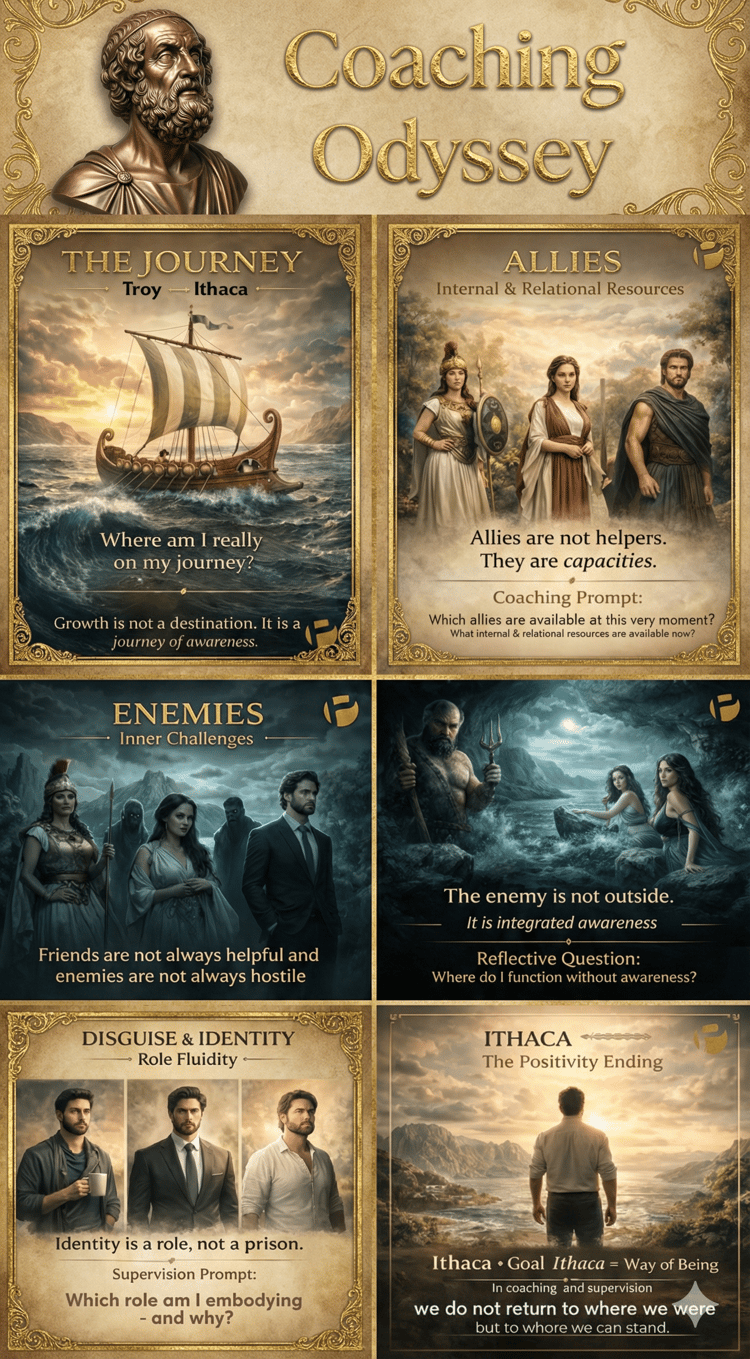 His professional identity is characterized by a strong systemic, developmental, and ontological orientation. His work is not limited to teaching techniques, but focuses on shaping the attitude, professional judgment, and ethical presence of coaches and supervisors. He has developed original models and frameworks, such as the Meta-Presence Journey, the Positivity Metamorphic Arc, and the 3 Circles Framework, which incorporate elements of systemic thinking, trauma-informed approach, narrative intelligence, and field awareness.
