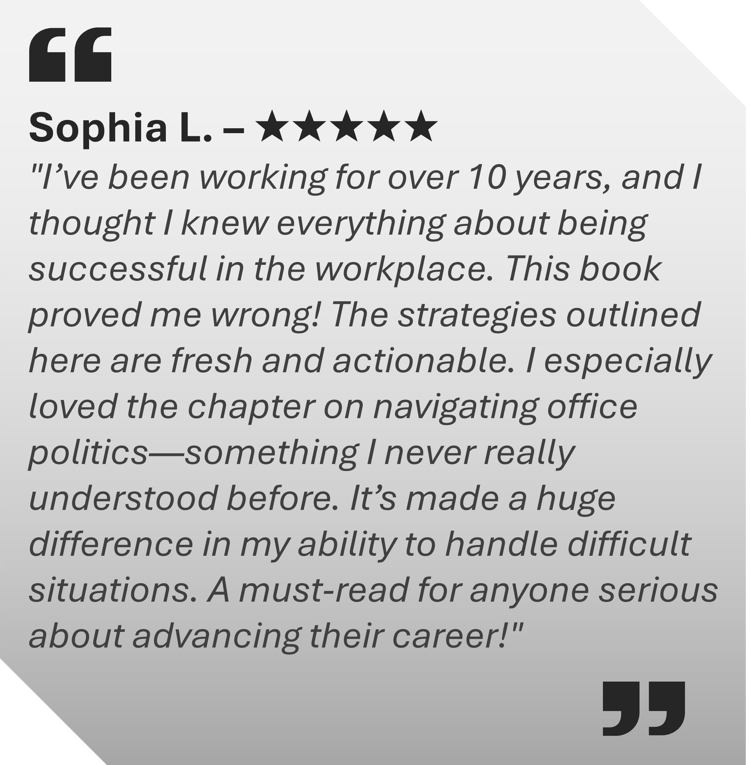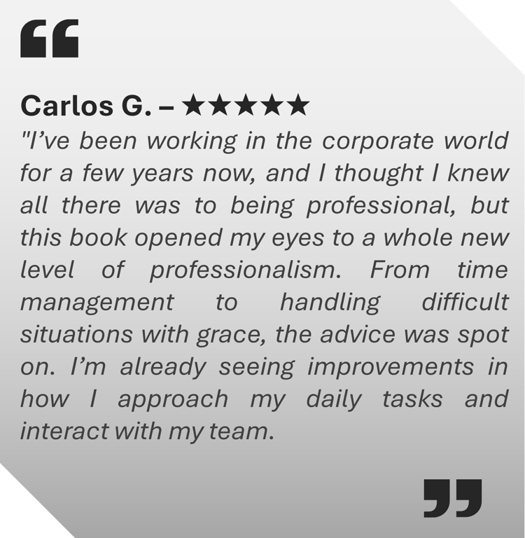 Start by reading one chapter at a time and applying each tip in real situations. Keep it on your desk as a daily reference. Over time, these small, consistent improvements will help you become a respected, confident, and high-performing professional.