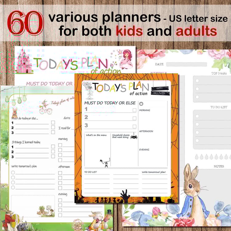 Printable planners for kids & families and more ... --- Available to download high-resolution PDF --- Physical item(s) will NOT be mailed but your file will be sent as an instant download