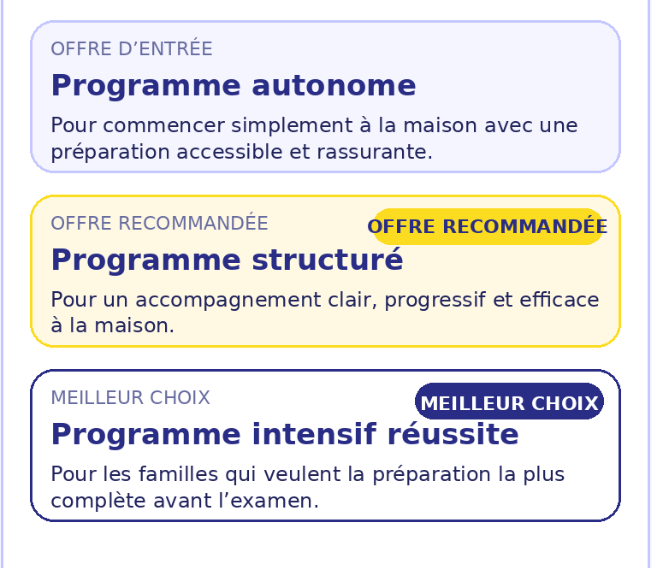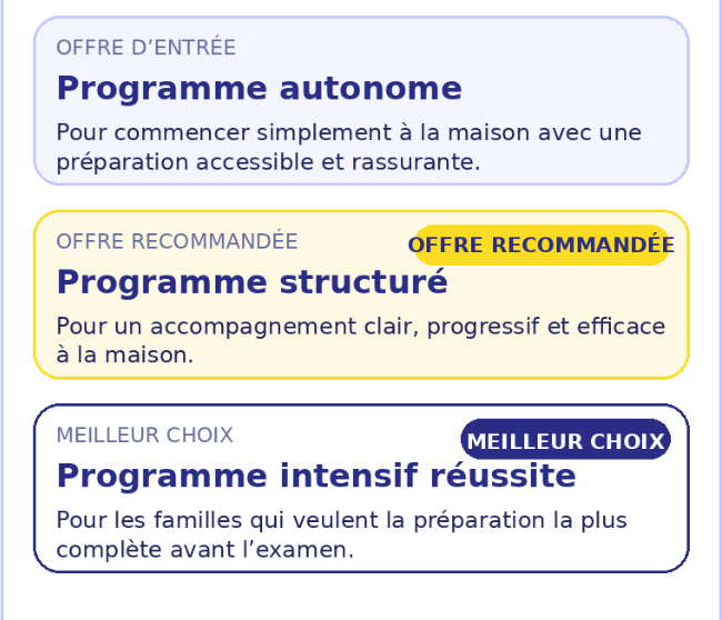 Retrouvez nos ressources de 6e année classées par niveau d’accompagnement pour vous aider à choisir rapidement la préparation la plus adaptée à votre enfant avant l’examen du ministère.