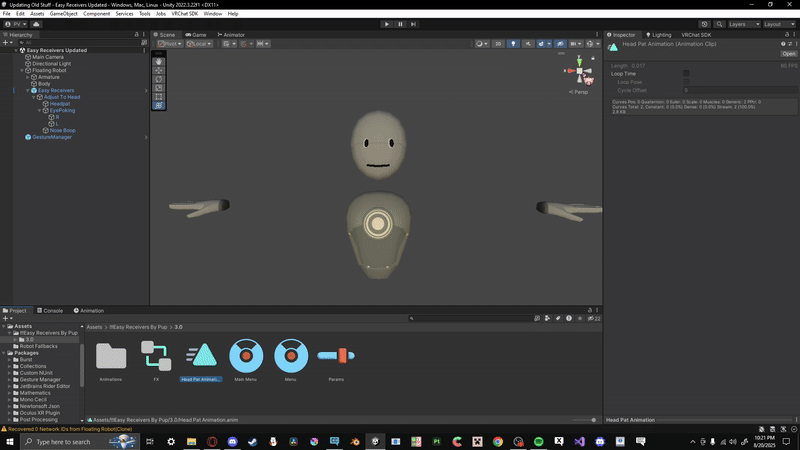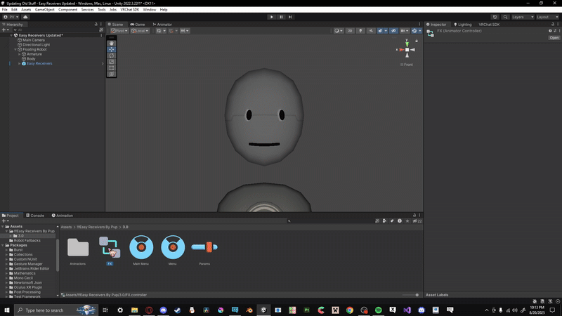 Adjust your main camera to face the front of your model, ensuring that the game view can fully see your model's head. Click on the FX and make sure to delete the created animation from your "Base Layer" .
