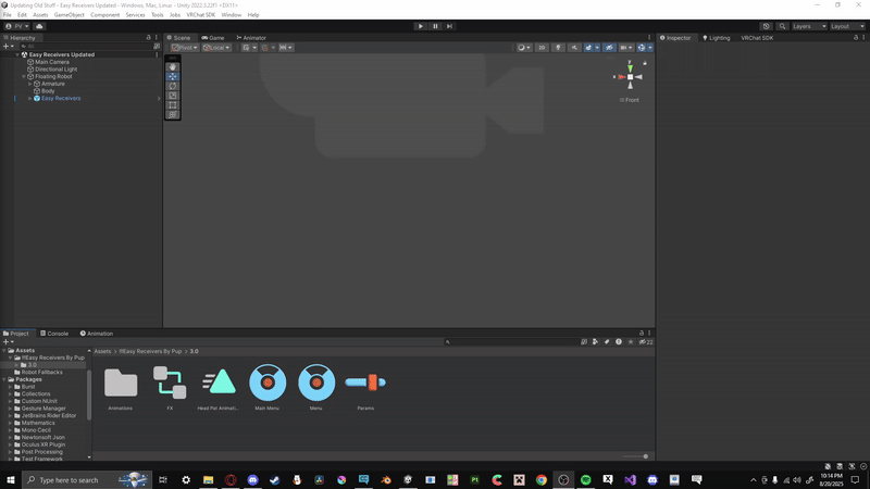 Once you've imported the Easy Receivers asset, open the Easy Receivers folder. Drag the Easy Receivers prefab onto your model in the scene hierarchy.