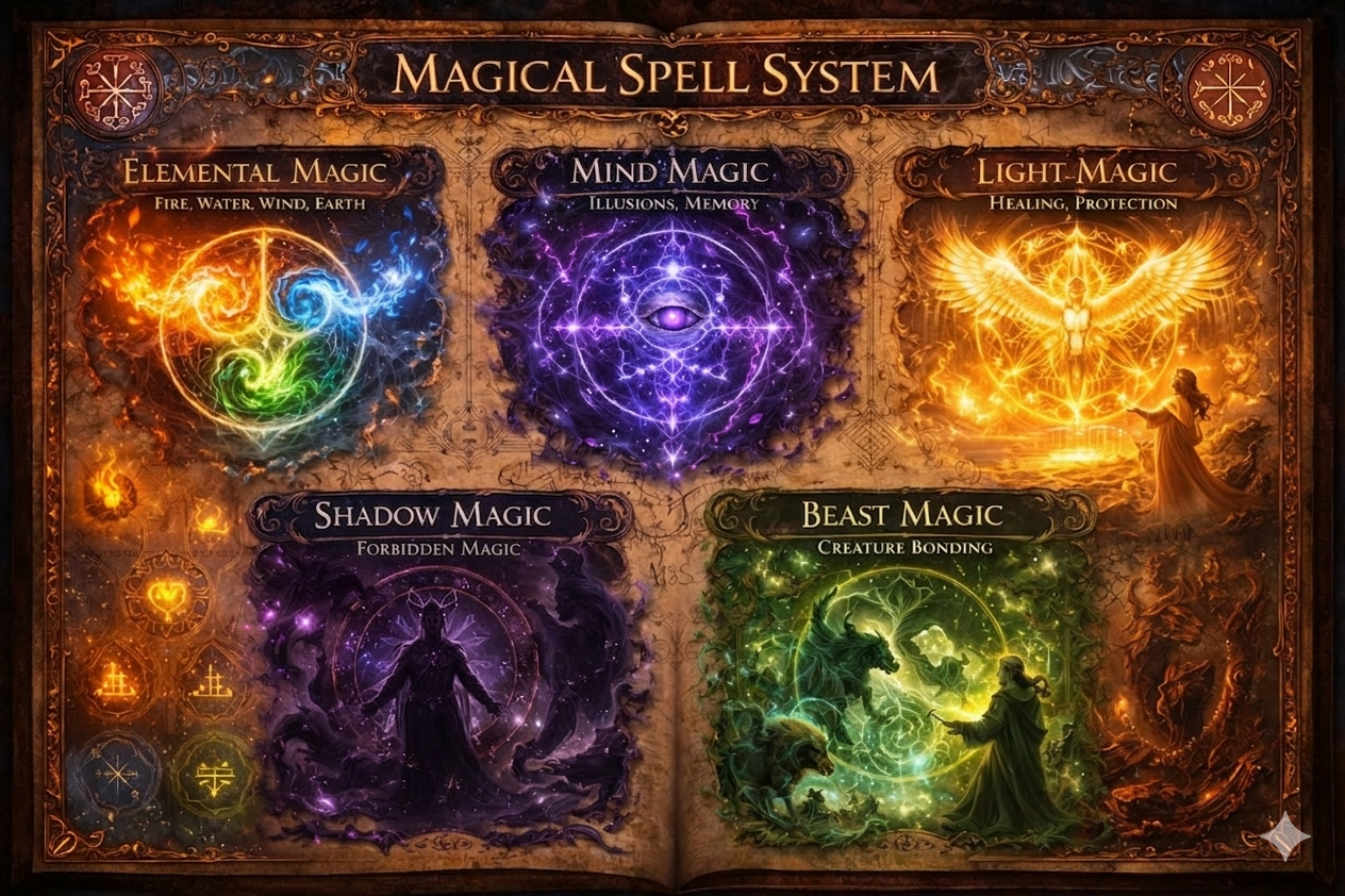 Magic in this world is spoken through Varynthian incantations combined with intention.