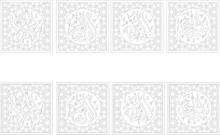 Explore a stunning collection of 45 Arabic calligraphy vector files, meticulously crafted and ready for your CNC cutting projects. Each design is available in high-quality DXF format, ensuring precision and ease of use with your cutting machines. Perfect for creating intricate wall art, decorative pieces, and personalized gifts, these designs bring the beauty of traditional Arabic calligraphy to life in a modern, digital format. Whether you're a professional designer or a hobbyist, this collection offers the perfect blend of creativity and functionality. Get ready to transform your ideas into reality with these ready-to-cut vector files!