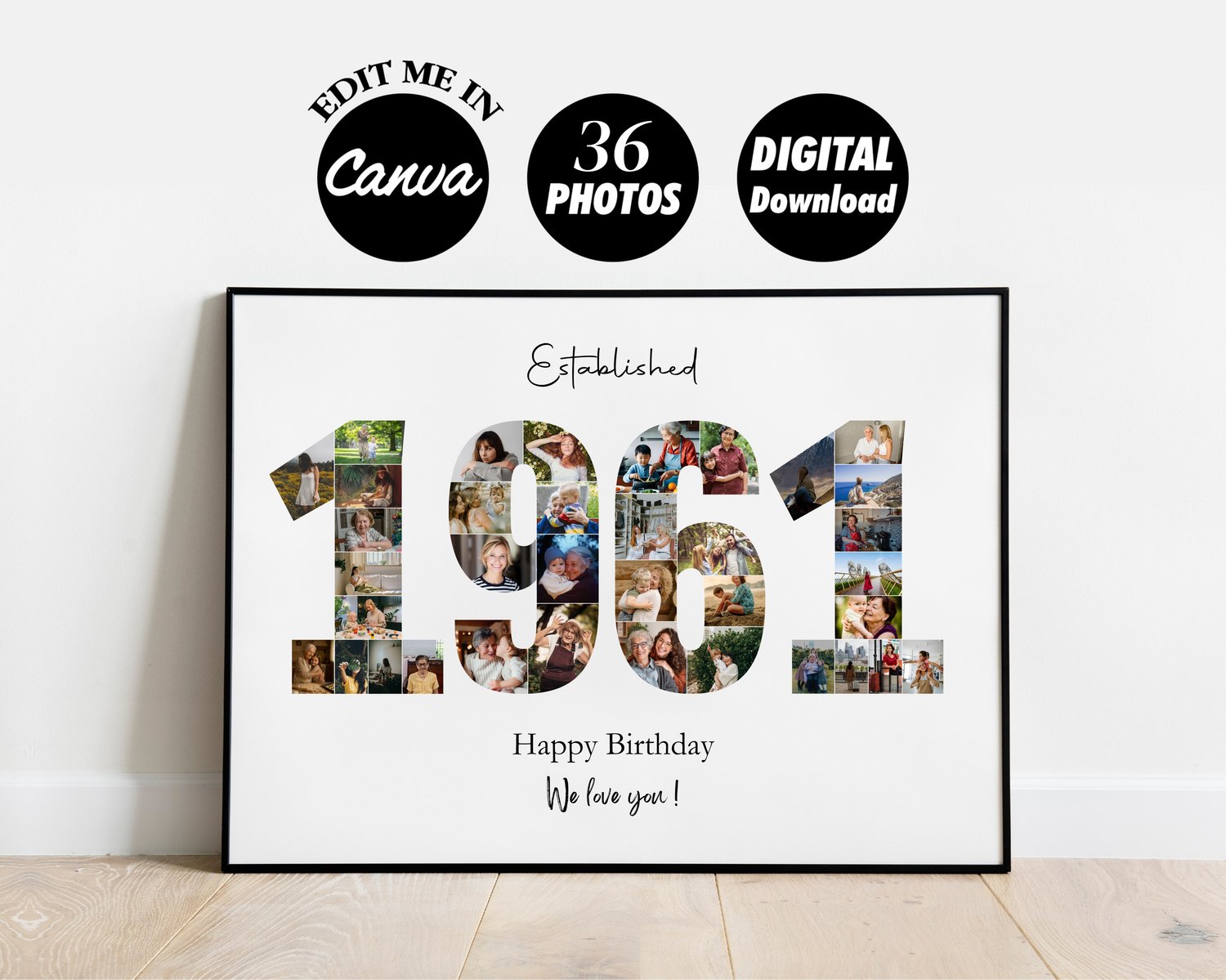 1961 Photo Collage Template, Birthday Anniversary Print, Gift for Him