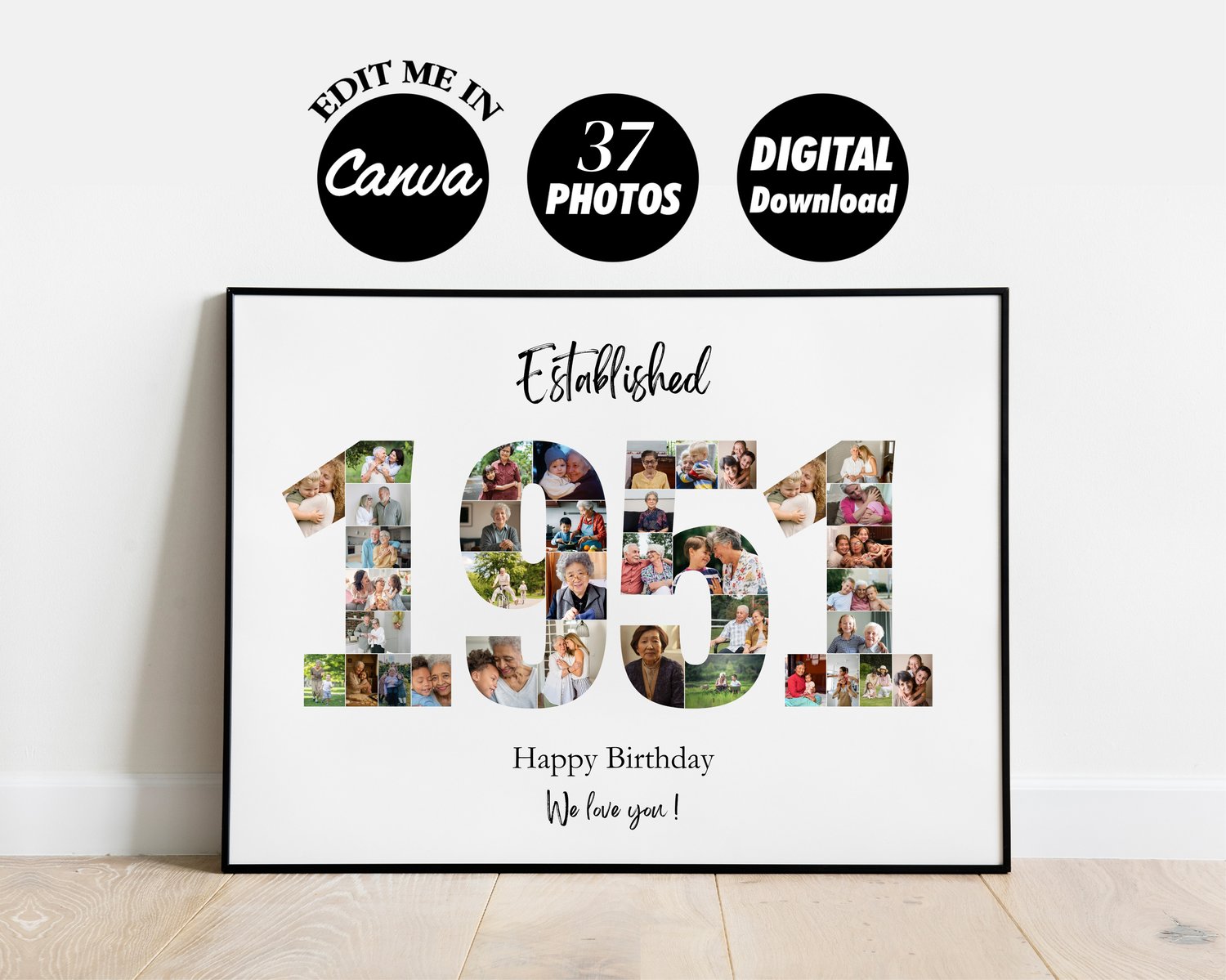 1951 Birthday Anniversary Photo Collage Gift, Custom Years Photo Print (Digital Download)