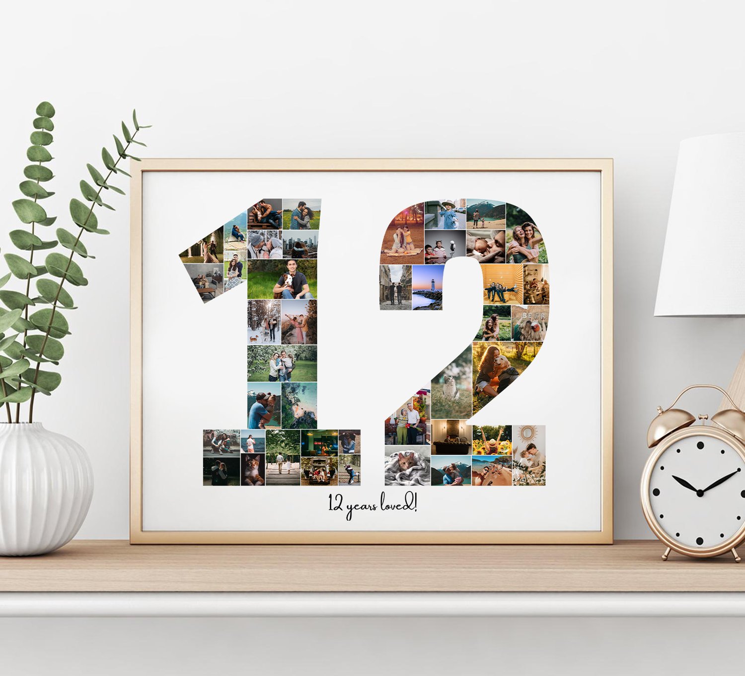 EDITABLE 44 photos, Personalized 12th Anniversary Photo Collage Template Gift for Boyfriend, Birthday Present for him, Digital Printable