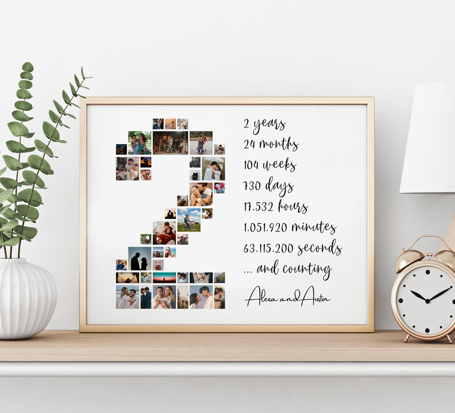 EDITABLE 40 photos, Personalized 2nd Anniversary Photo Collage Template Gift for Boyfriend, 2nd Birthday, Digital Printable