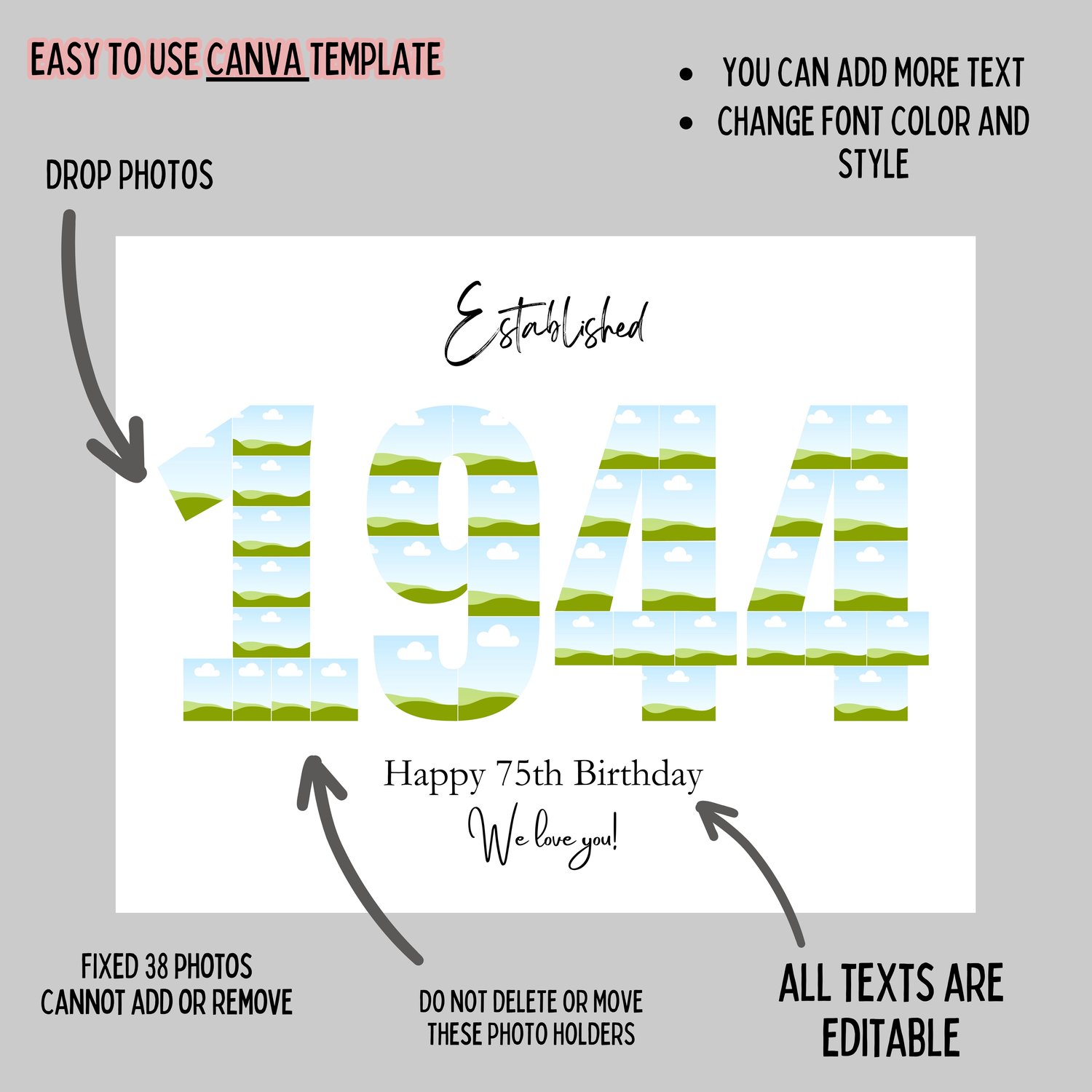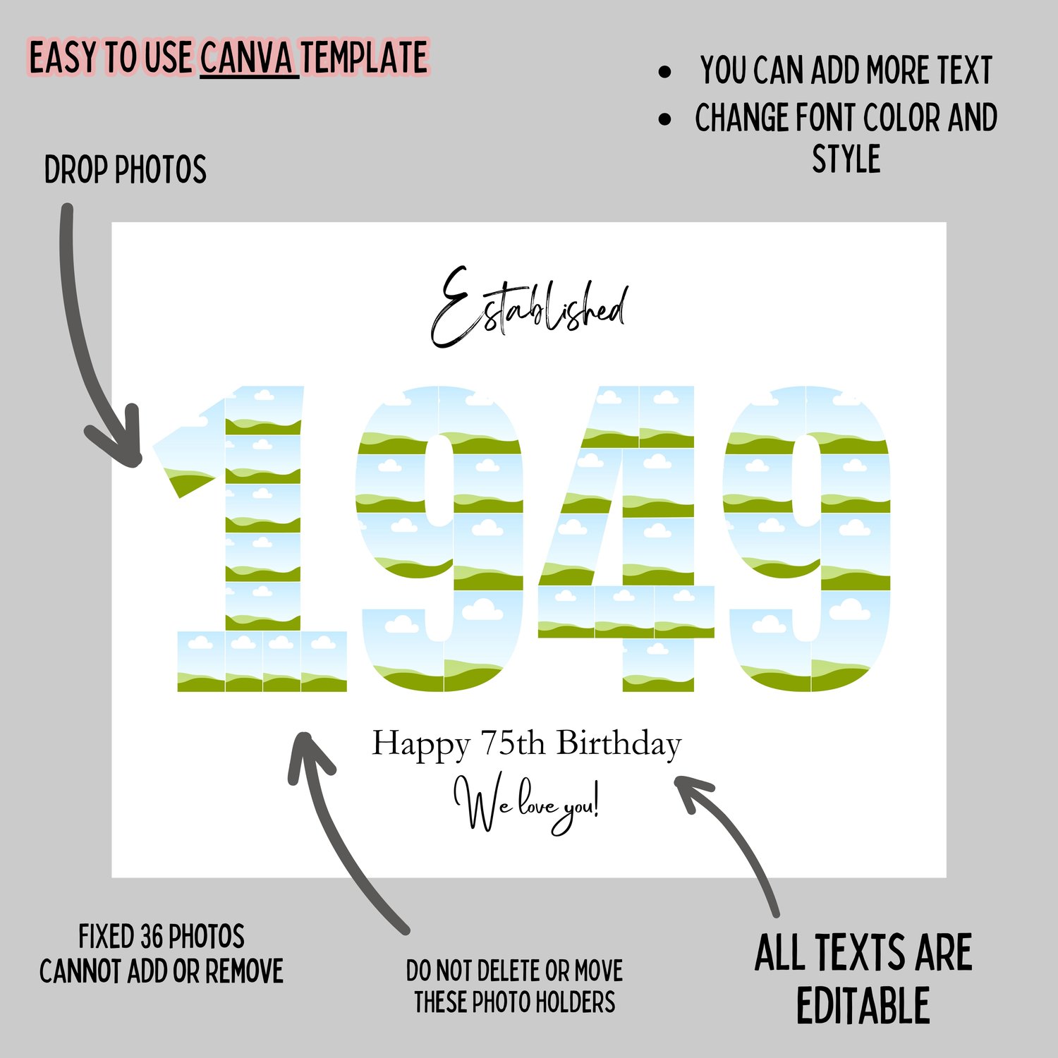 EDITABLE Custom 1949 Collage, 75th birthday collage print, Photo Collage Template, Number Collage, DIGITAL FILE