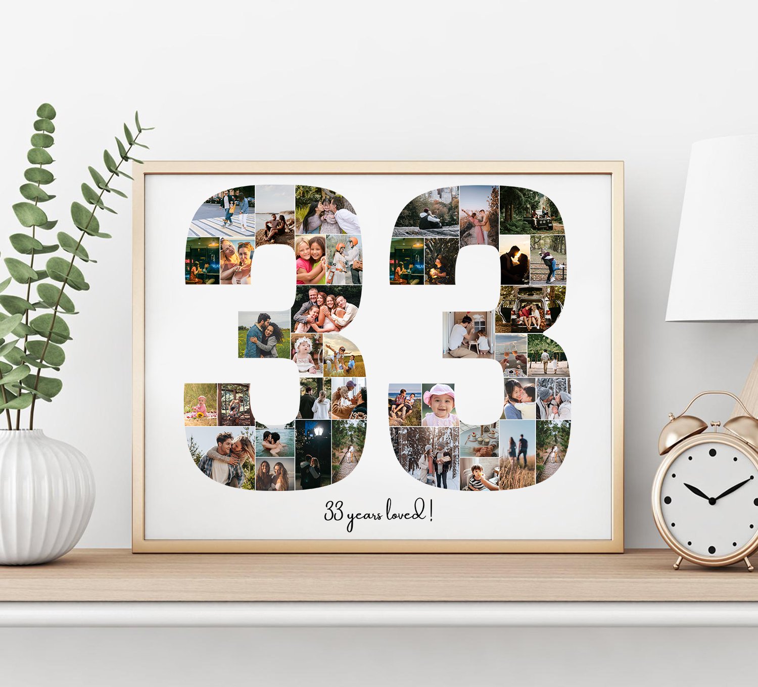 EDITABLE Custom 33rd anniversary Collage, 33rd birthday collage print, Photo Collage Gift, Number Collage, year collage, 33 birthday