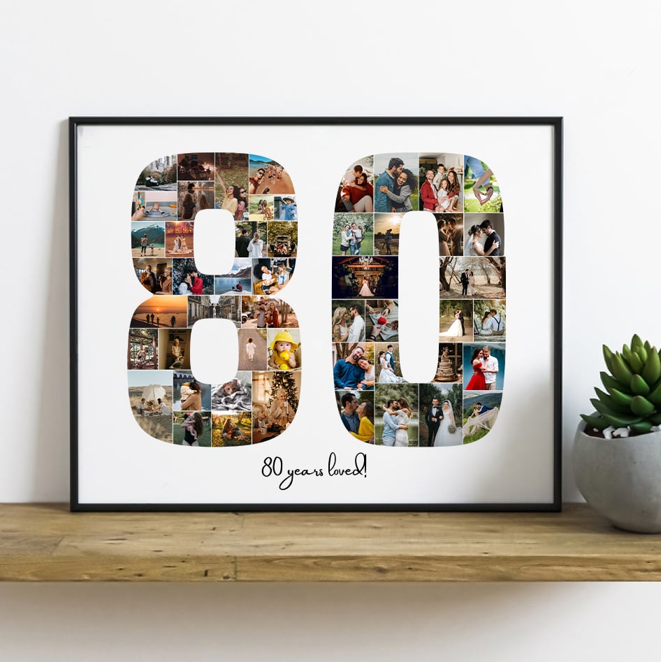 EDITABLE Custom 80 Collage, 80th birthday anniversary collage print, Photo Collage Gift, year collage, Gift for grandma grandpa