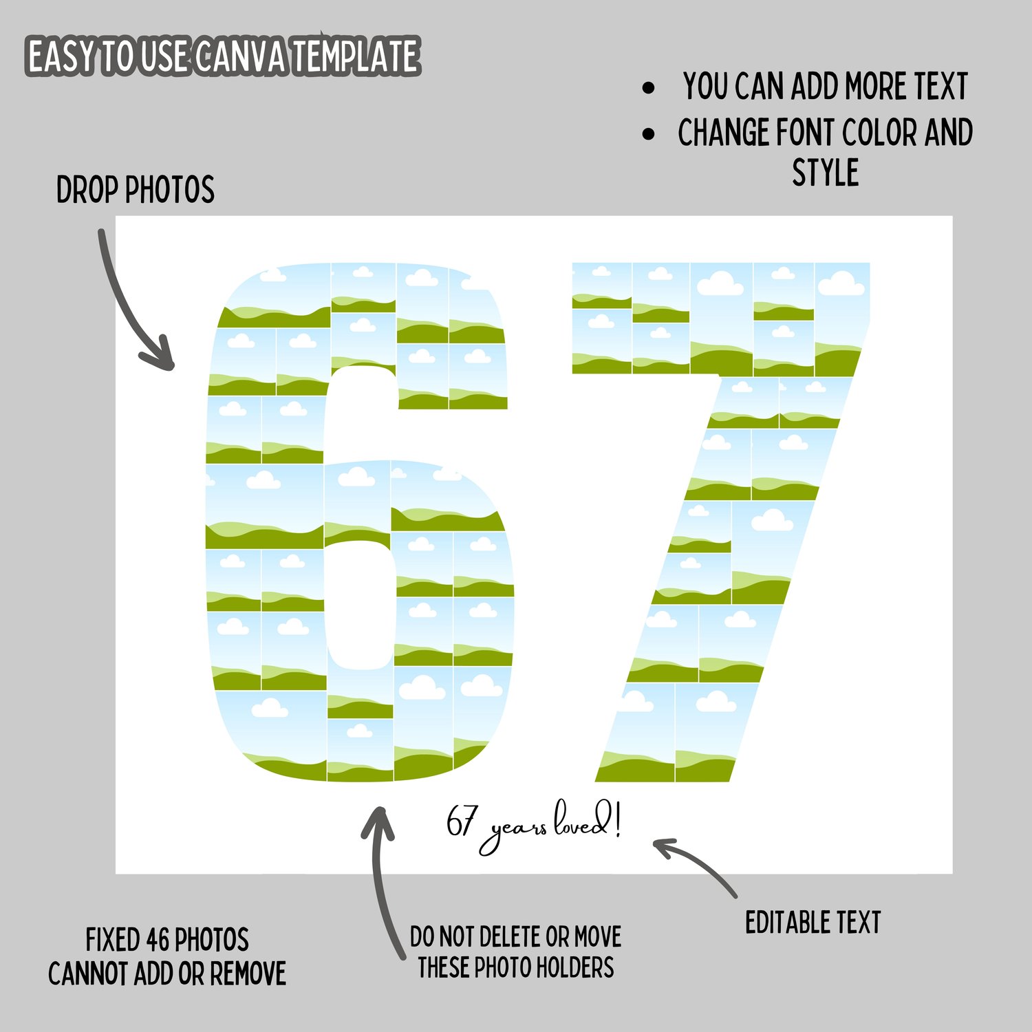 EDITABLE Personalized 67th Birthday Photo Collage Template Gift for Husband and Wife, 67th Anniversary, Digital Printable