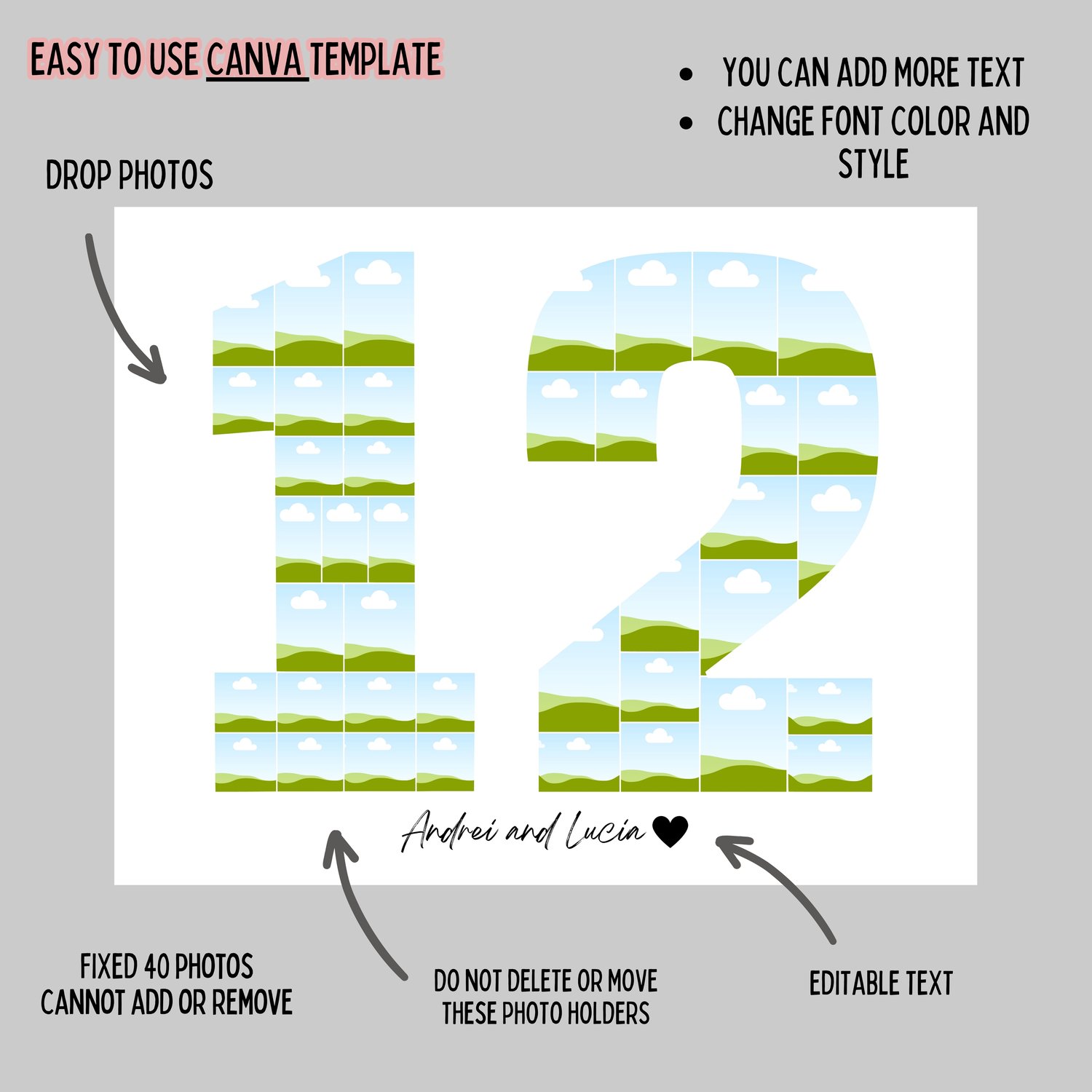 EDITABLE Personalized 12th Anniversary Photo Collage Template Gift for Boyfriend, Birthday Present for him, Digital Printable