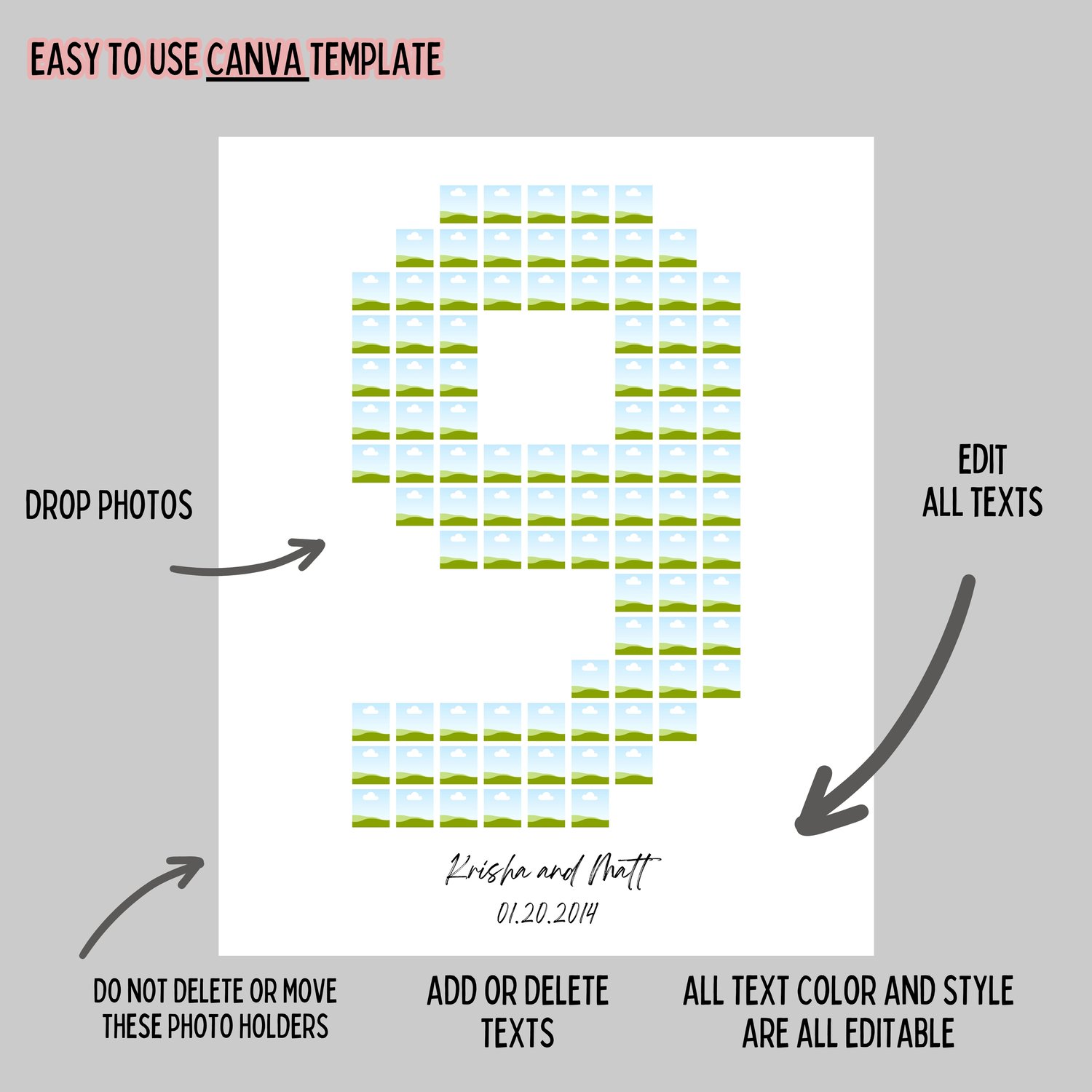 EDITABLE Personalized 9th Anniversary Photo Collage Template Gift for Boyfriend, 9th Birthday, Digital Printable