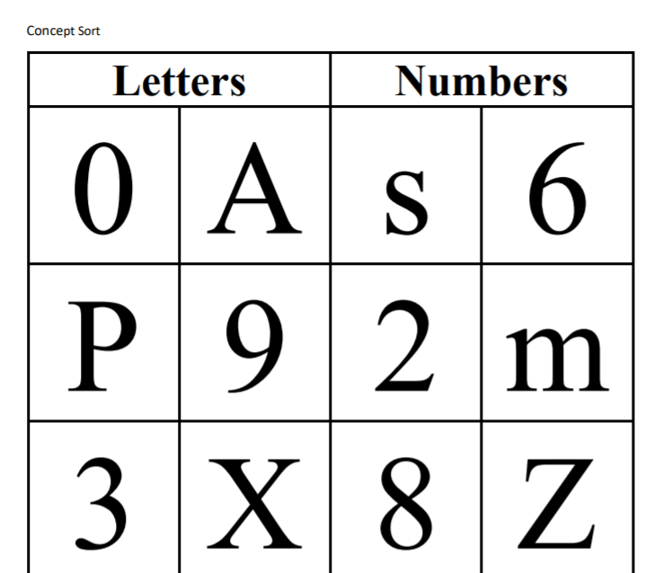 Letters and Numbers Sort: Concept Sort
