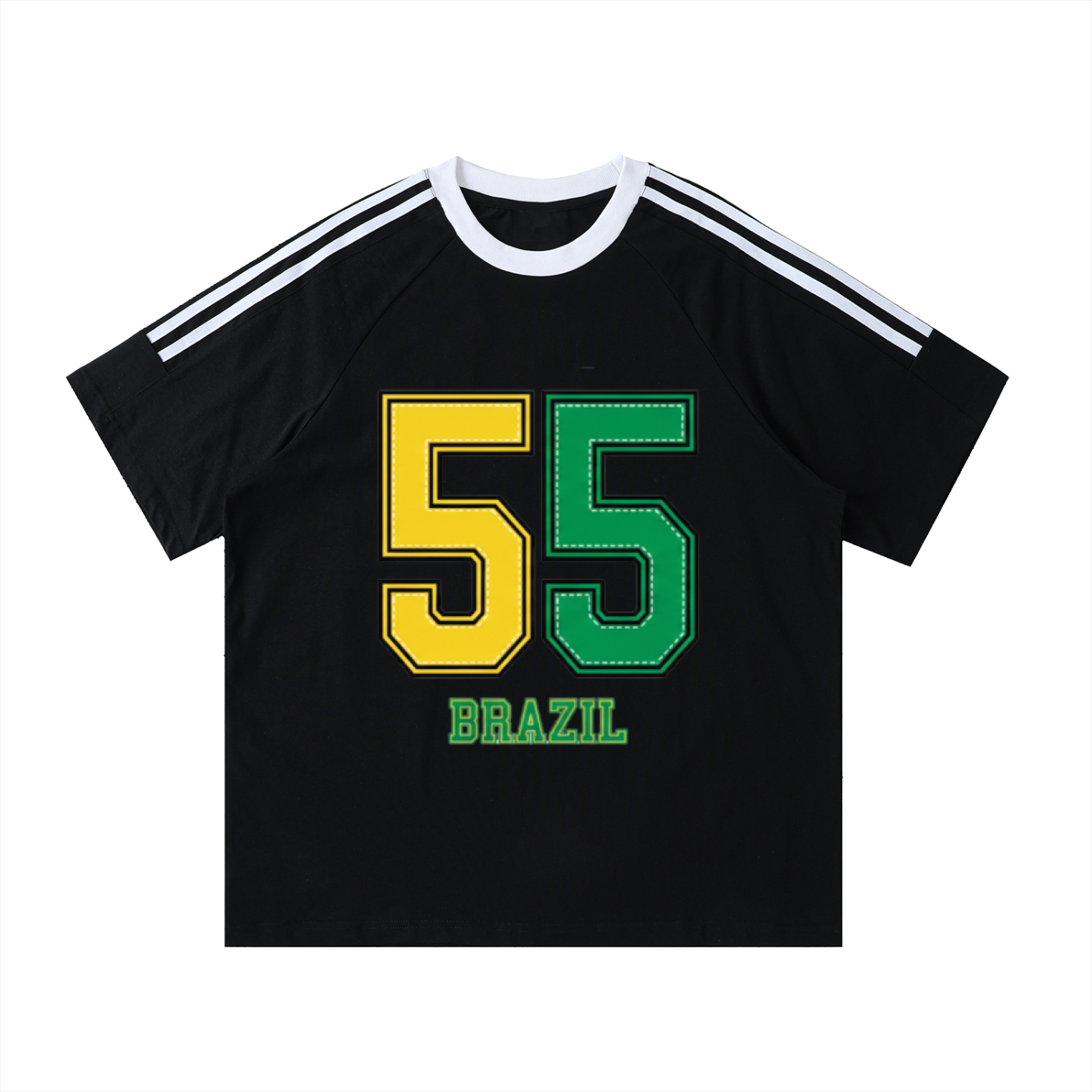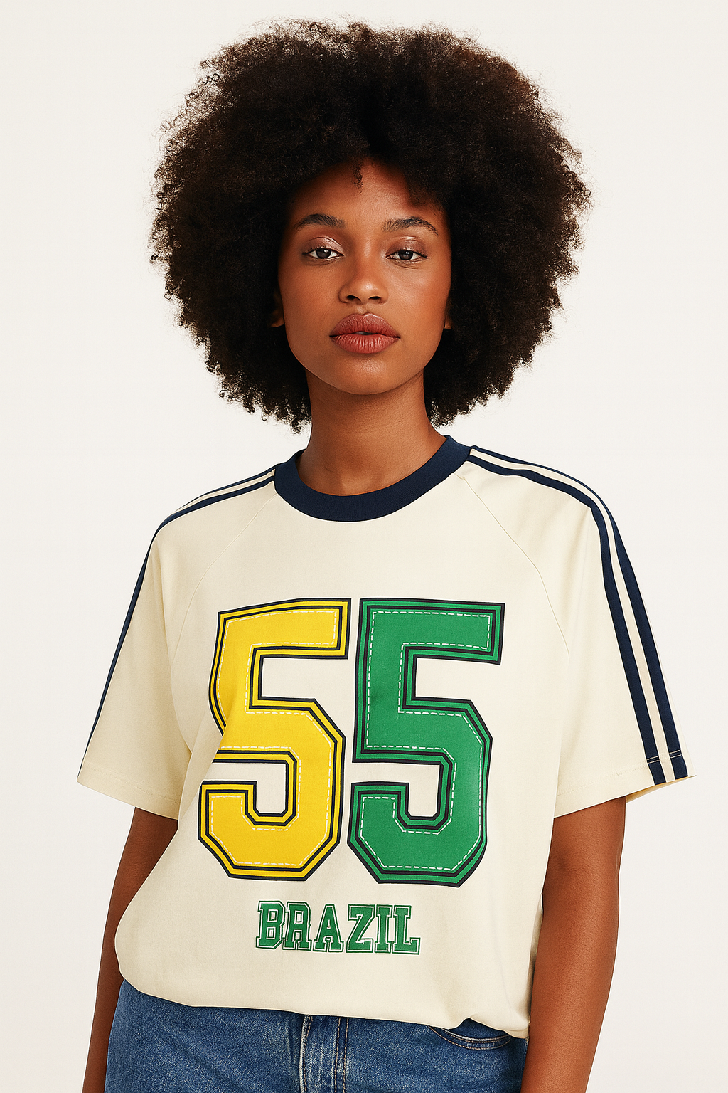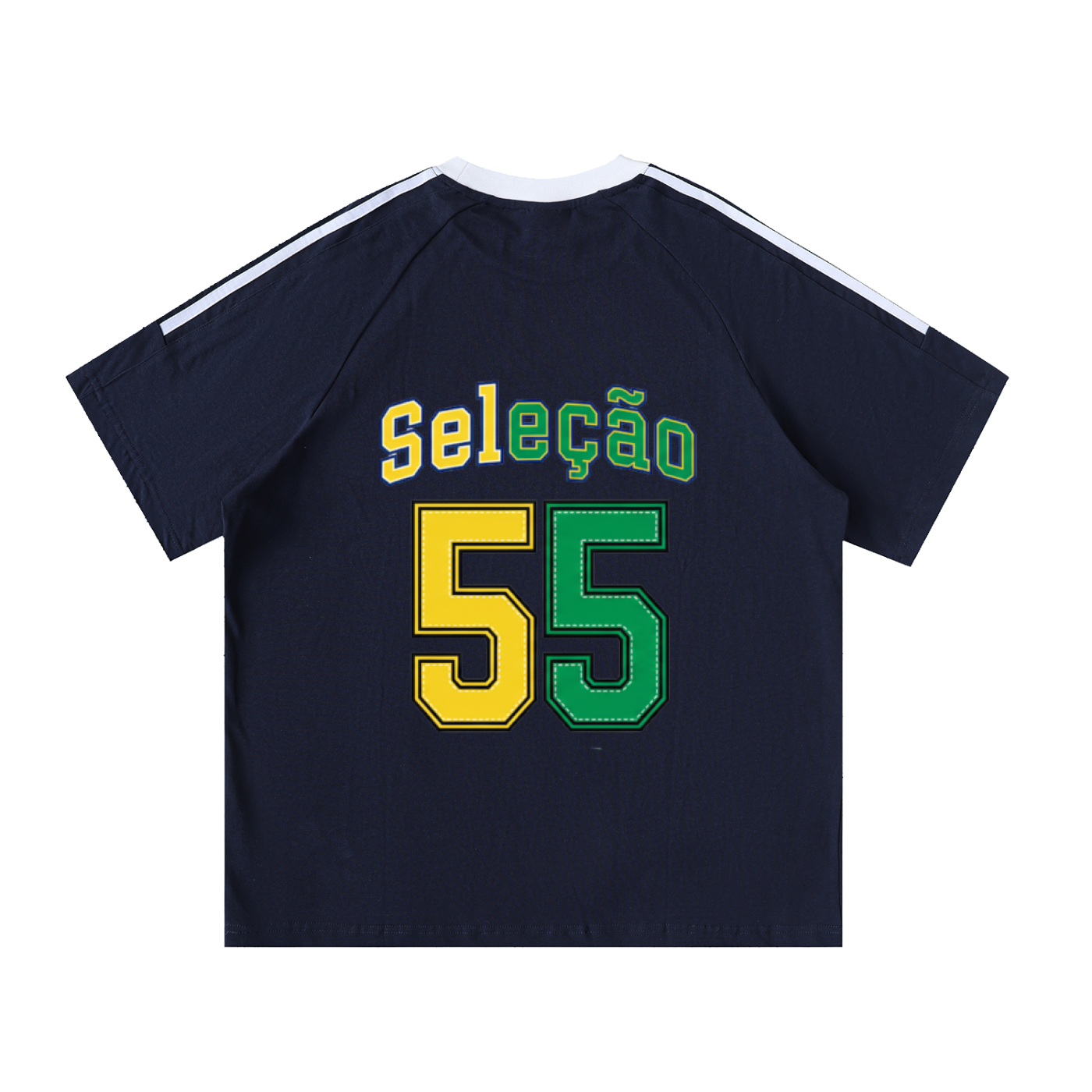 Bring the Samba energy wherever you go with the “Brazil Contrast Tape Jersey Style Tee.” Featuring bold contrast tape details and a sporty fit, this tee captures the passion of Brazilian football while keeping it casual for everyday wear. Crafted from soft cotton for comfort and streetwear-ready style.
