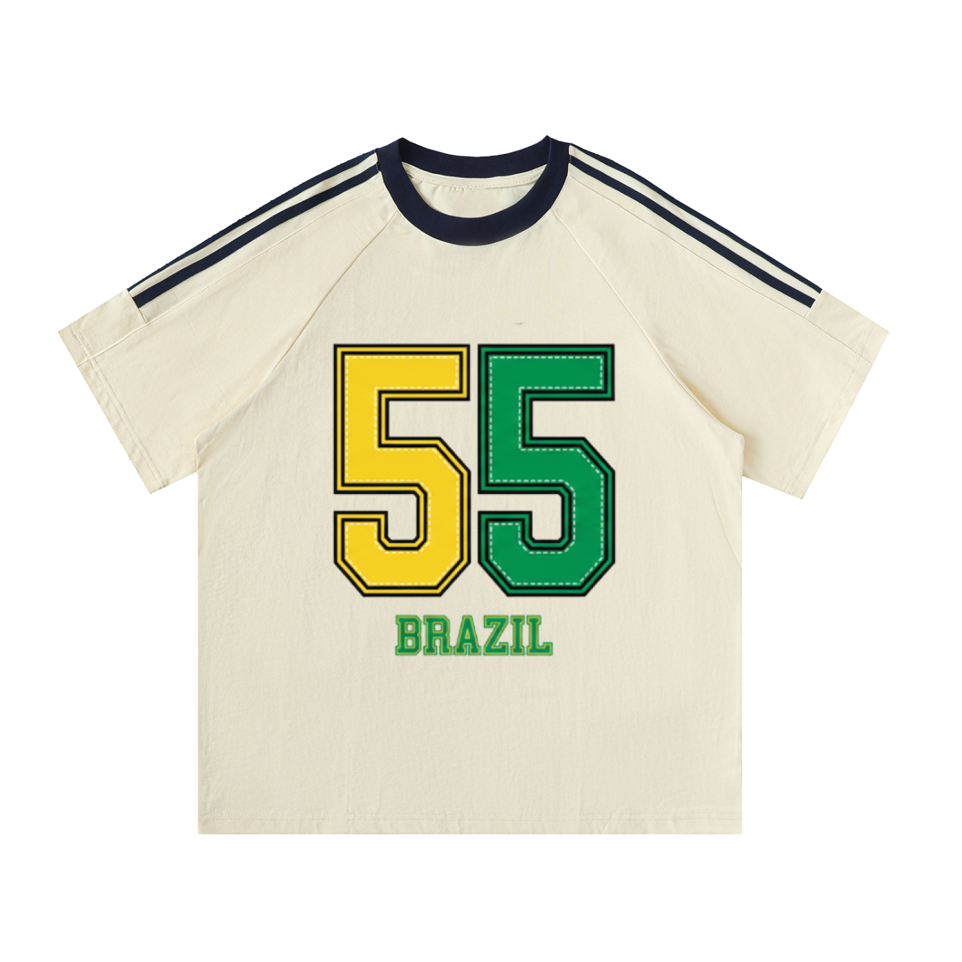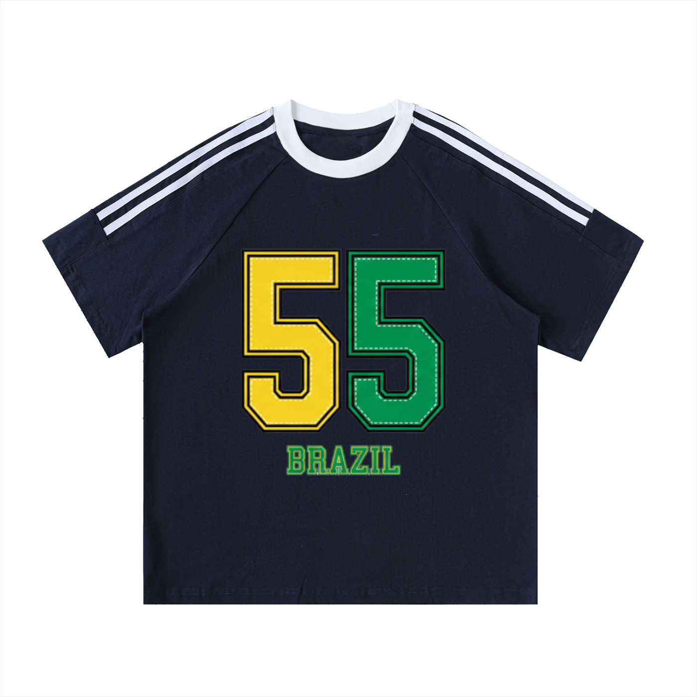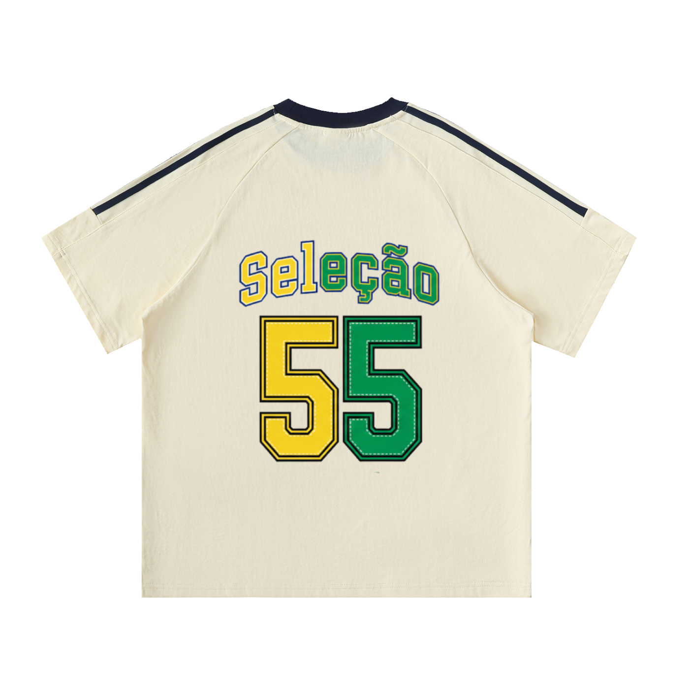 Bring the Samba energy wherever you go with the “Brazil Contrast Tape Jersey Style Tee.” Featuring bold contrast tape details and a sporty fit, this tee captures the passion of Brazilian football while keeping it casual for everyday wear. Crafted from soft cotton for comfort and streetwear-ready style.
