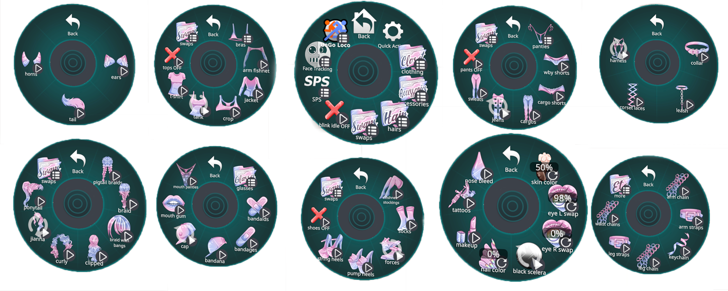 harness/straps [edited by me, NO RE-USE] | bandana | cap | collar | shades | glasses | keychain | jewelry | mouth panties | gum | corset laces | bandaids | bandages |