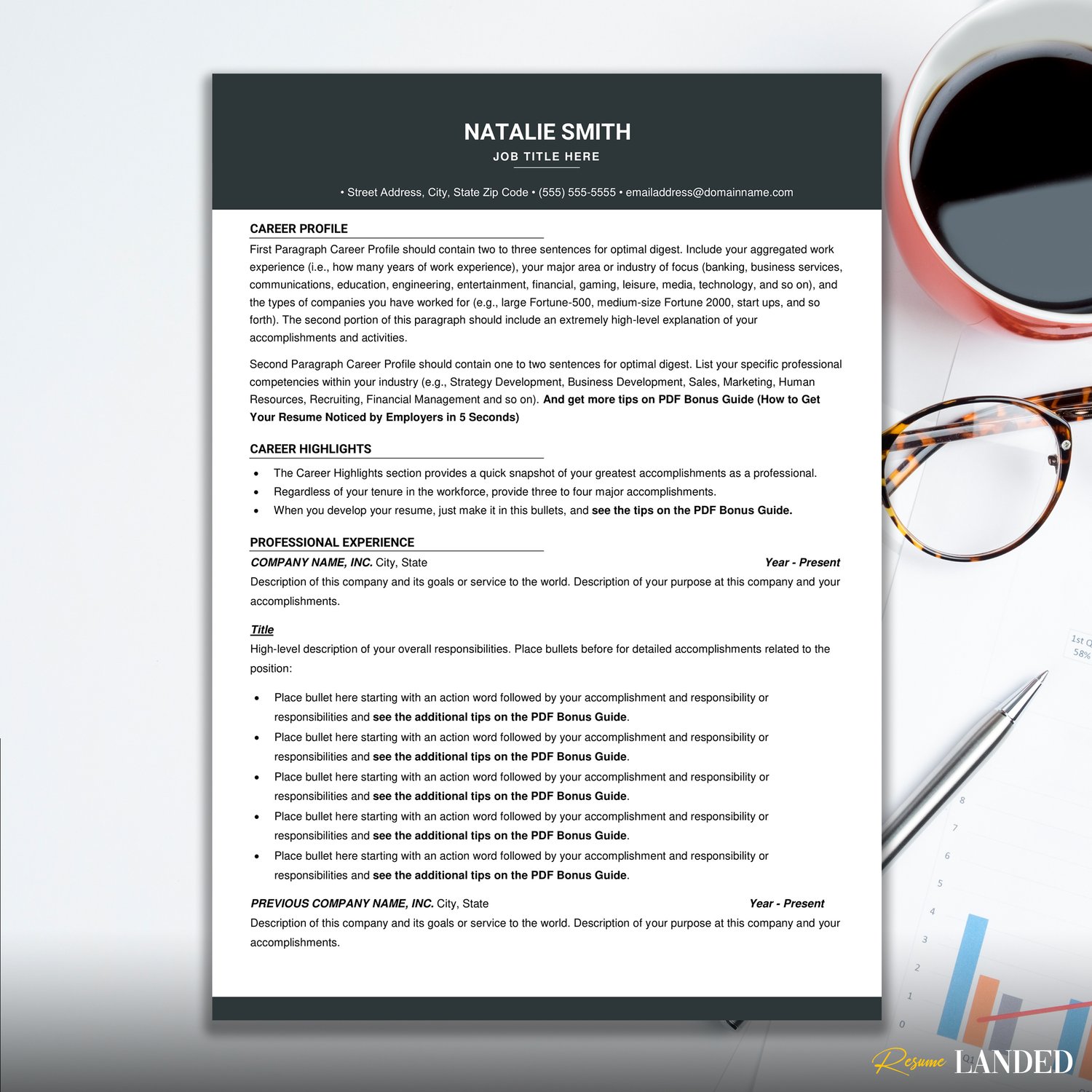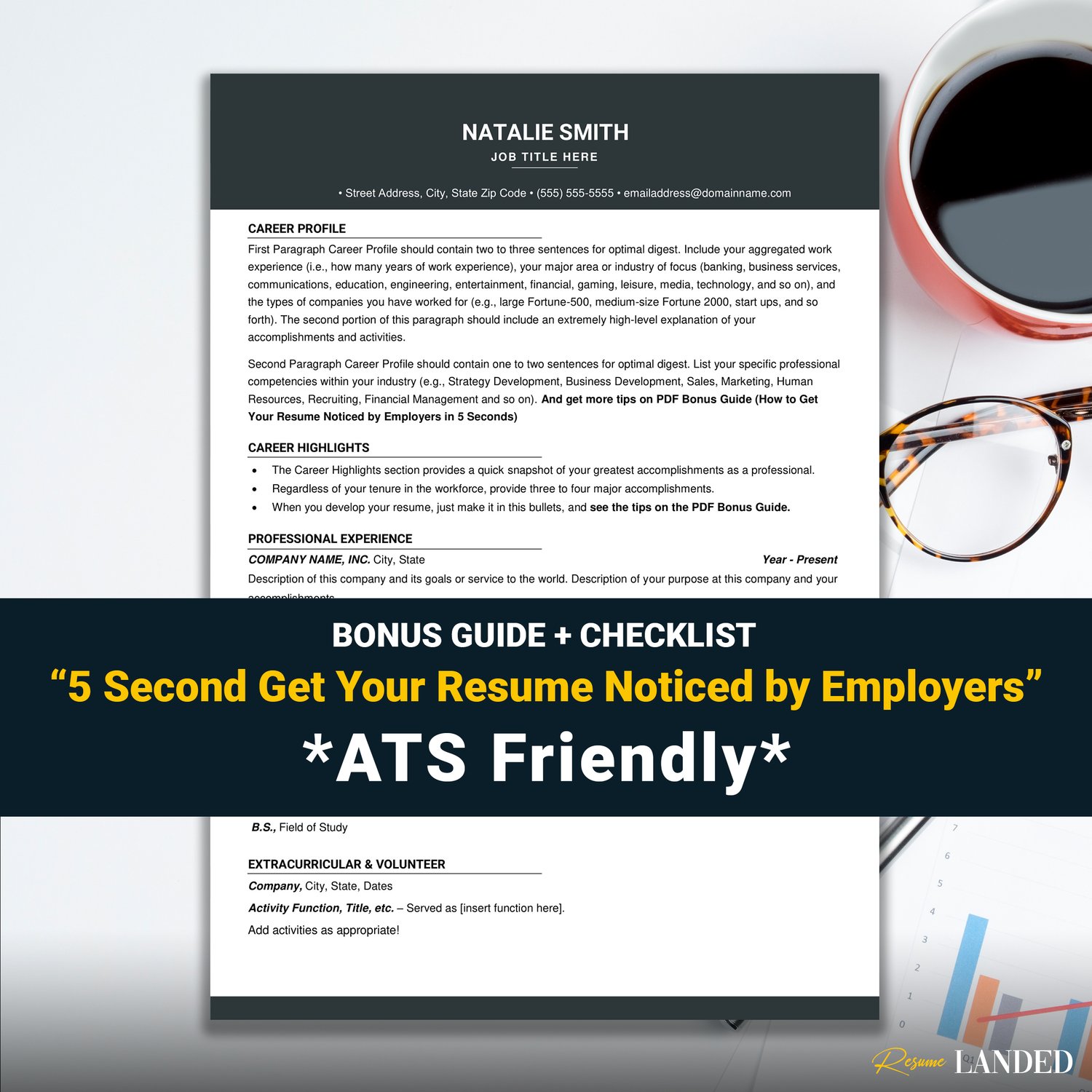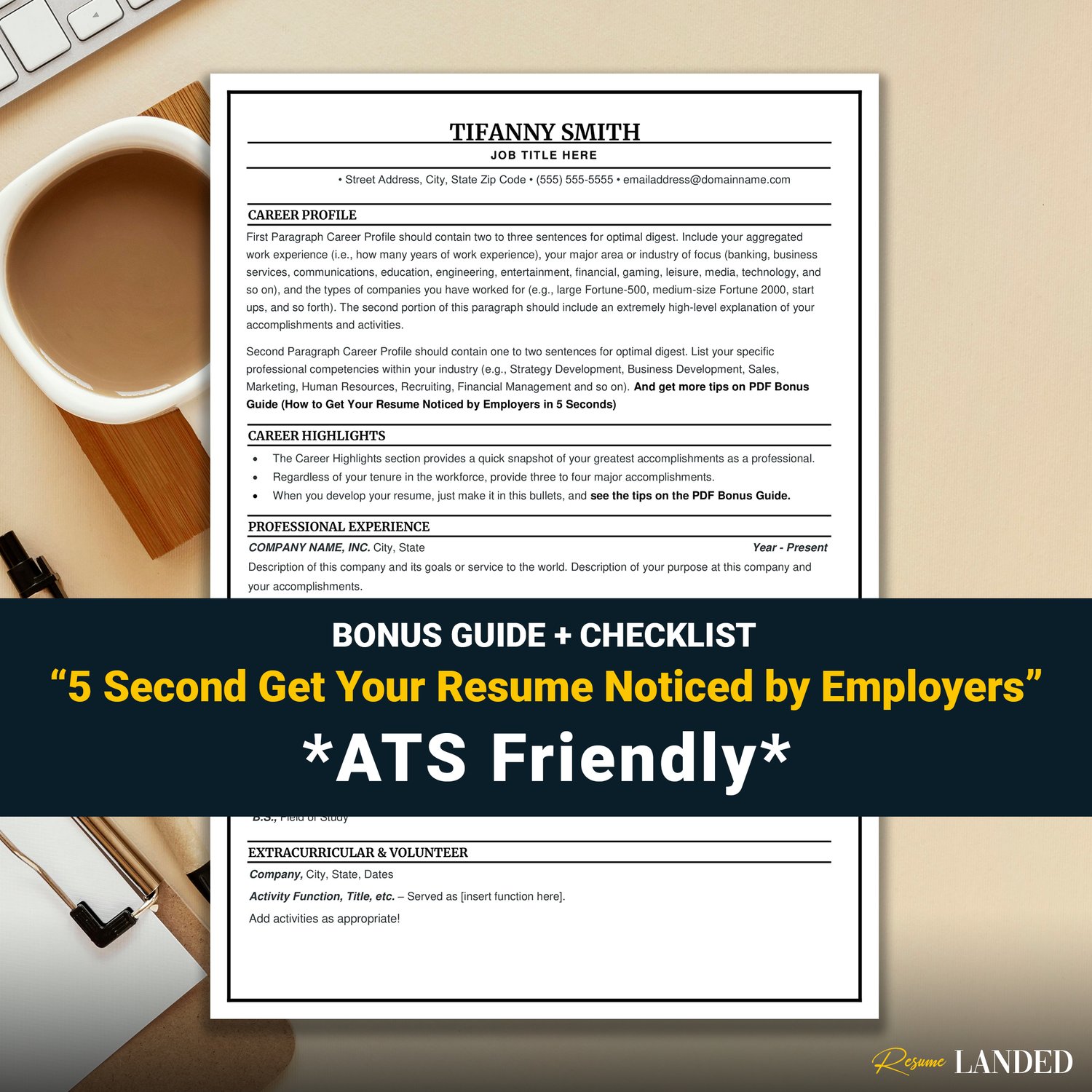 Your purchase also includes a free resume writing guide "How to get your resumenoticed by employers in 5 seconds", so you can stop Googling old, outdated answers and start applying ASAP (knowing that your resume stands out from the rest)!